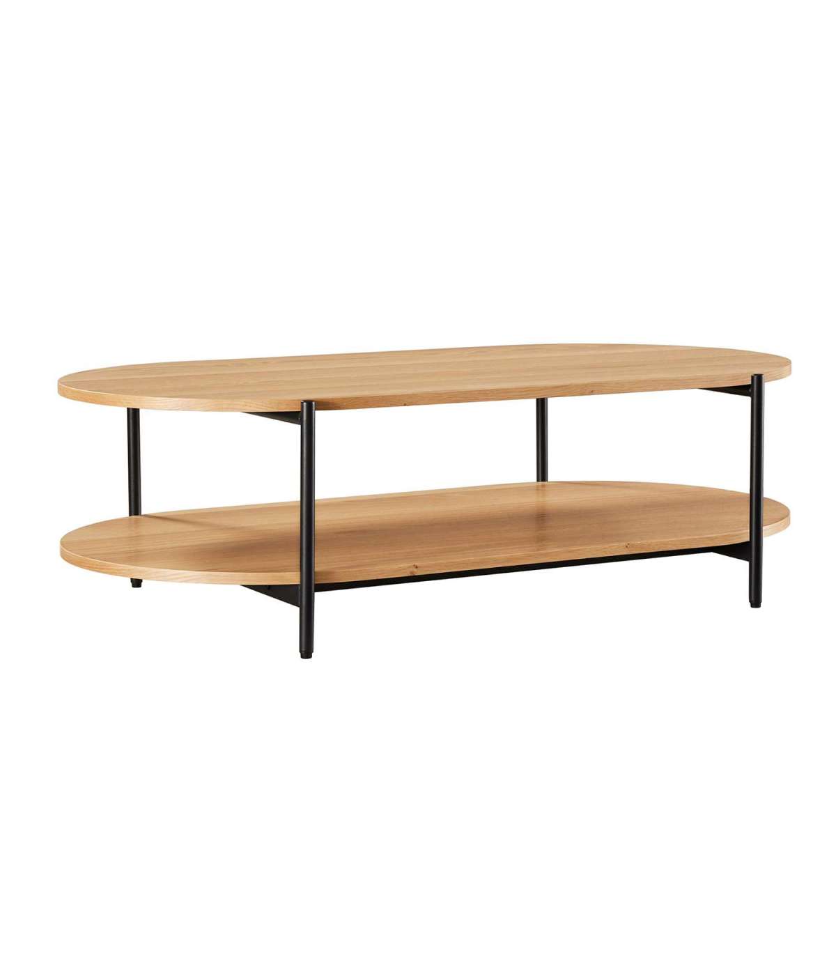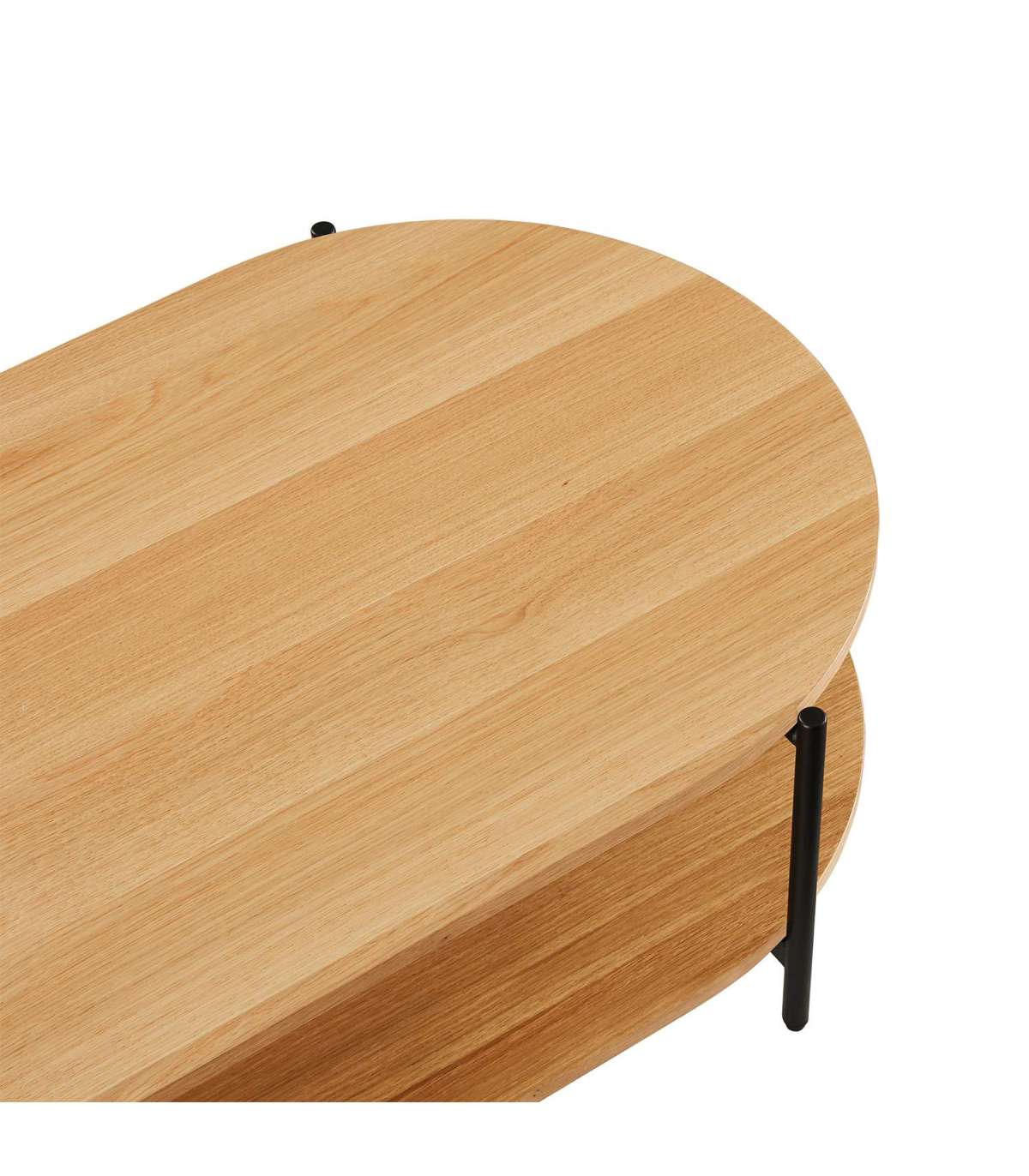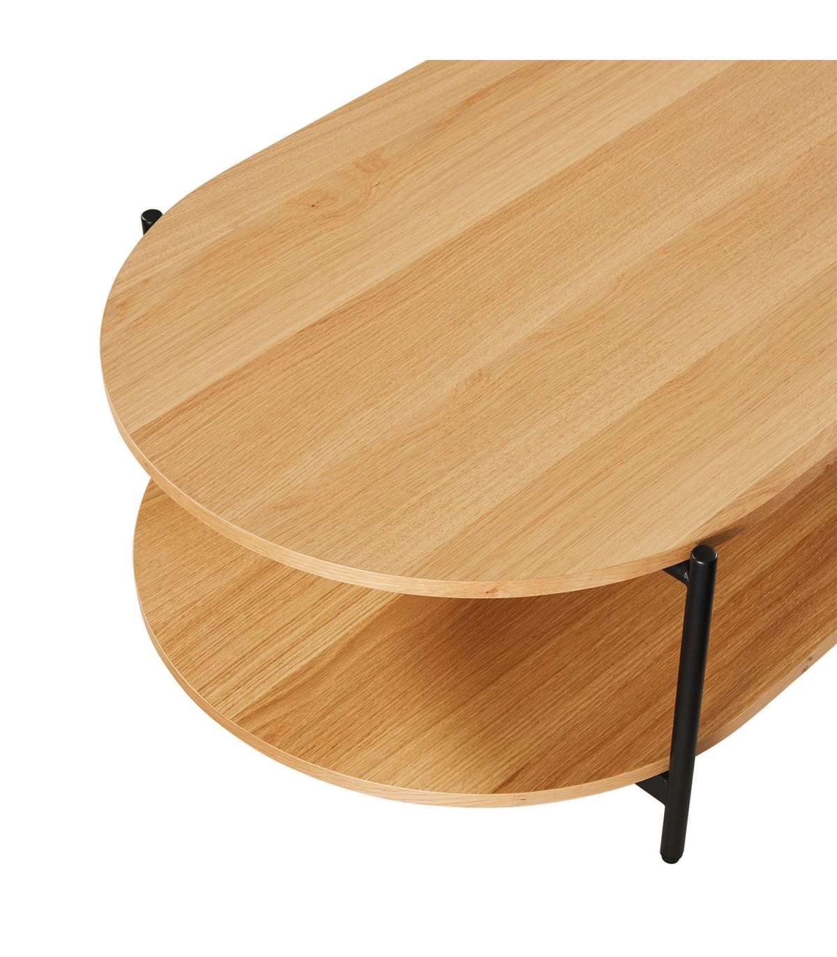 Diivanilaud DAVIA 115x60xH34cm, tamm. Lauaplaadid: mööbliplaat naturaalse tammespooniga. Metallist lauajalad on viimistletud musta pulbervärviga.
