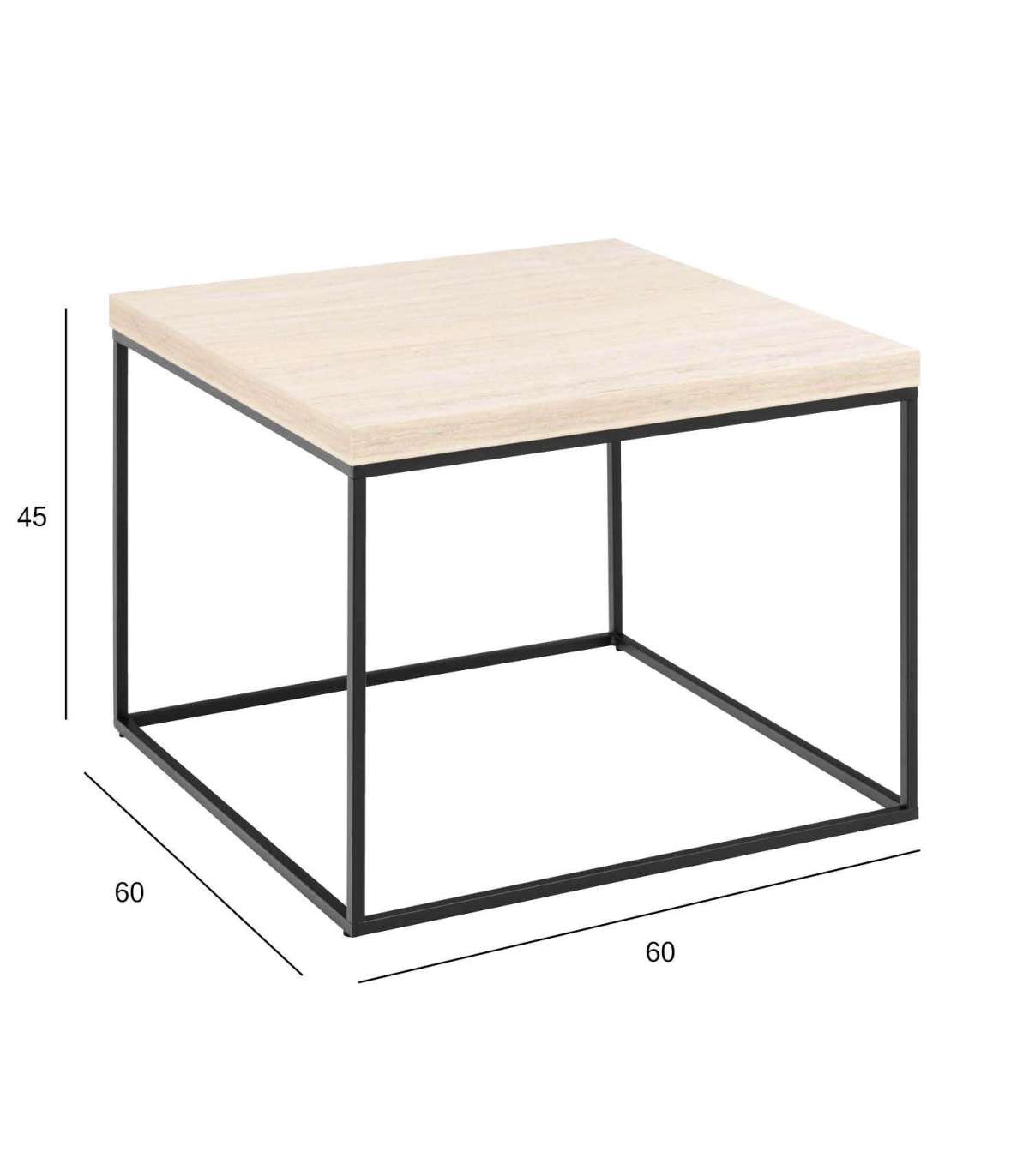 Diivanilaua ilmekas lauaplaat toetub ruudukujulisele terasalusele. Lauaplaadil on travertiini välimus ja see on valmistatud puitkiudplaadist. Mõõdud on 60x60xH45cm. HOOLDUS: Kasutage seebiveest kuivaks väänatud lappi ja pühkige pind kuivaks. Vältige küürimispulbri või nailonkäsnade kasutamist, kuna need pleegitavad või kriimustavad pinda. Ärge hõõruge pinda kõvade esemetega.