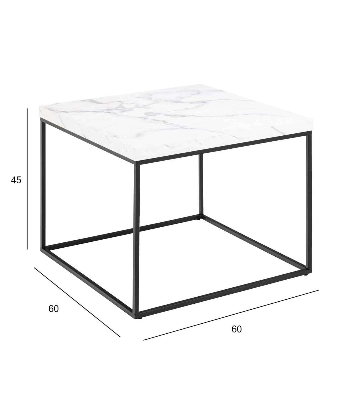 Diivanilaua ilmekas lauaplaat toetub ruudukujulisele terasalusele. Lauaplaadil on valge marmori välimus ja see on valmistatud puitkiudplaadist. Mõõdud on 60x60xH45cm. HOOLDUS: Kasutage seebiveest kuivaks väänatud lappi ja pühkige pind kuivaks. Vältige küürimispulbri või nailonkäsnade kasutamist, kuna need pleegitavad või kriimustavad pinda. Ärge hõõruge pinda kõvade esemetega.