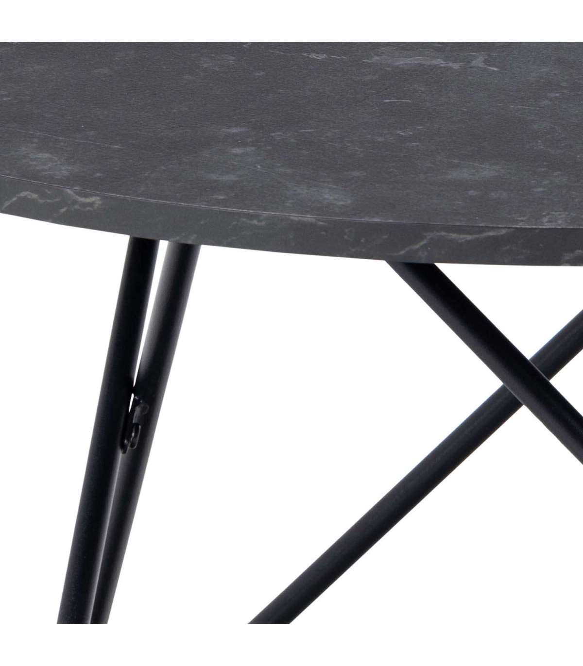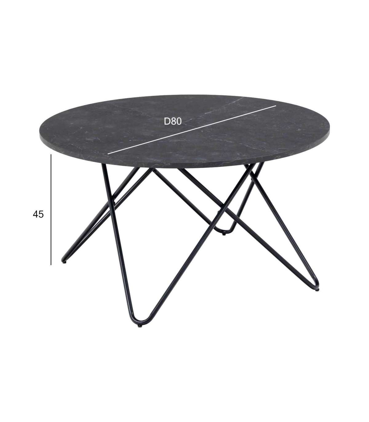 Diivanilaud mõjub kaasaegse ja samal ajal ajatuna. Musta marmori välimusega ümmargune lauaplaat toetub terasest valmistatud geomeetrilisele alusele, mis lisab mängulise pöörde. Diivanilaud sobib nii eklektilistesse kui minimalistlikesse kodudesse. Mõõdud on 80x80xH45cm. HOOLDUS: Üldiselt vajavad kõik melamiinpinnad minimaalset hooldust. Kasutage seebiveest kuivaks väänatud lappi ja pühkige pind kuivaks. Vältige küürimispulbri või nailonkäsnade kasutamist, kuna need pleegivad või kriimustavad laminaati. Alus: Kasutage igapäevaseks puhastamiseks seebiveest kuivaks väänatud lappi. Rooste vältimiseks pühkige pind kuivaks. Ärge hõõruge pinda kõvade esemetega.
