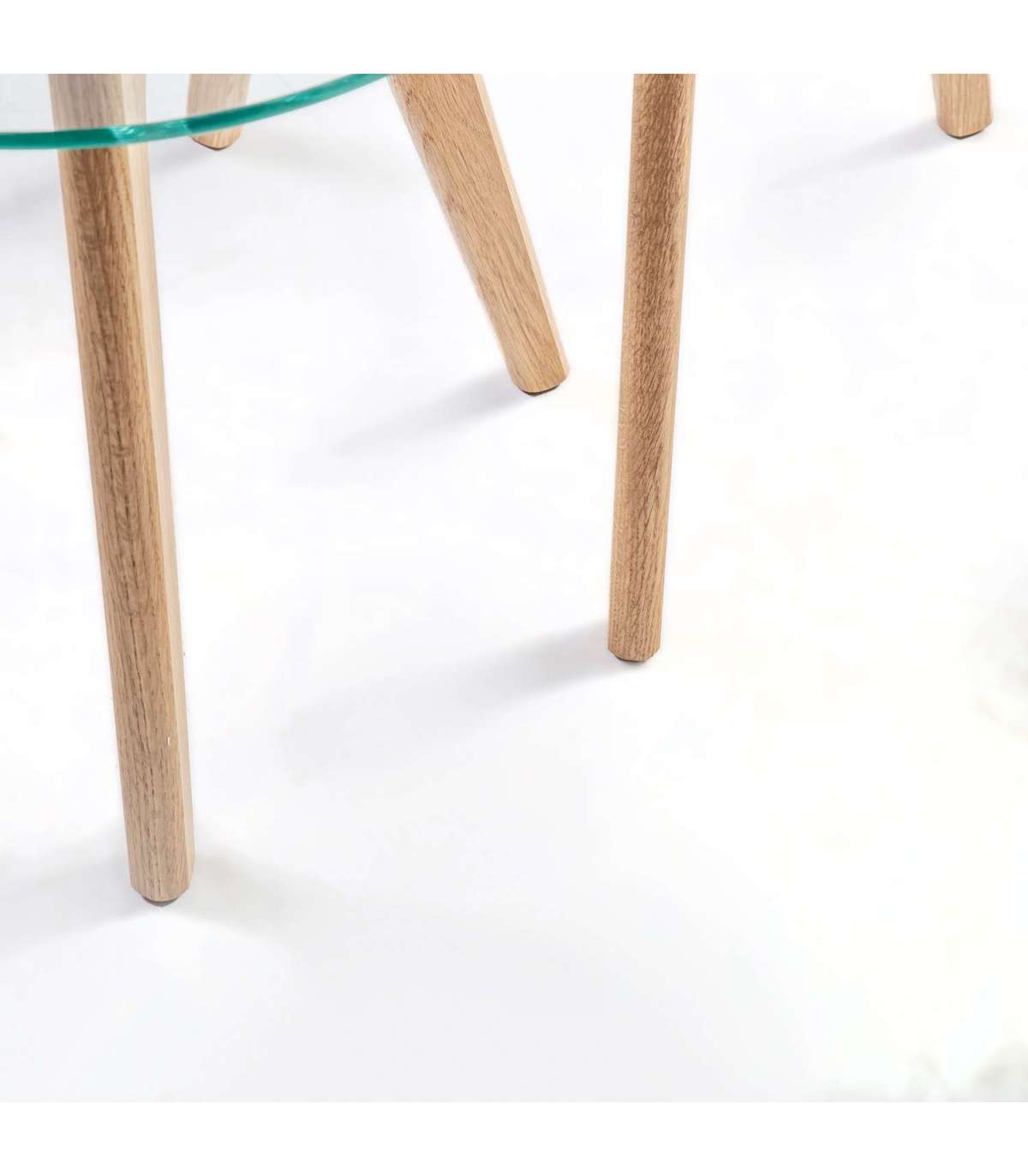 Lauaplaat: 8mm läbipaistev klaas. Tammepuidust jalad.