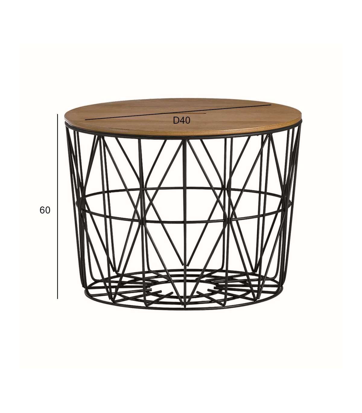 Diivanilaud HELENA D60xH40cm. Lauaplaat: 18mm MDF plaat naturaalse tammespooniga, lakitud. Metallist alusraam on värvitud musta pulbervärviga.
