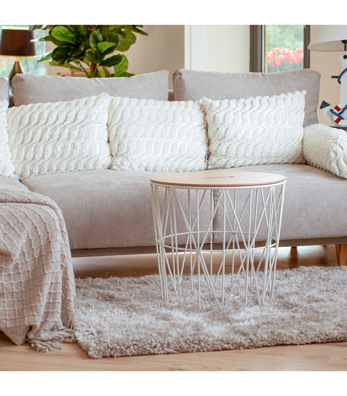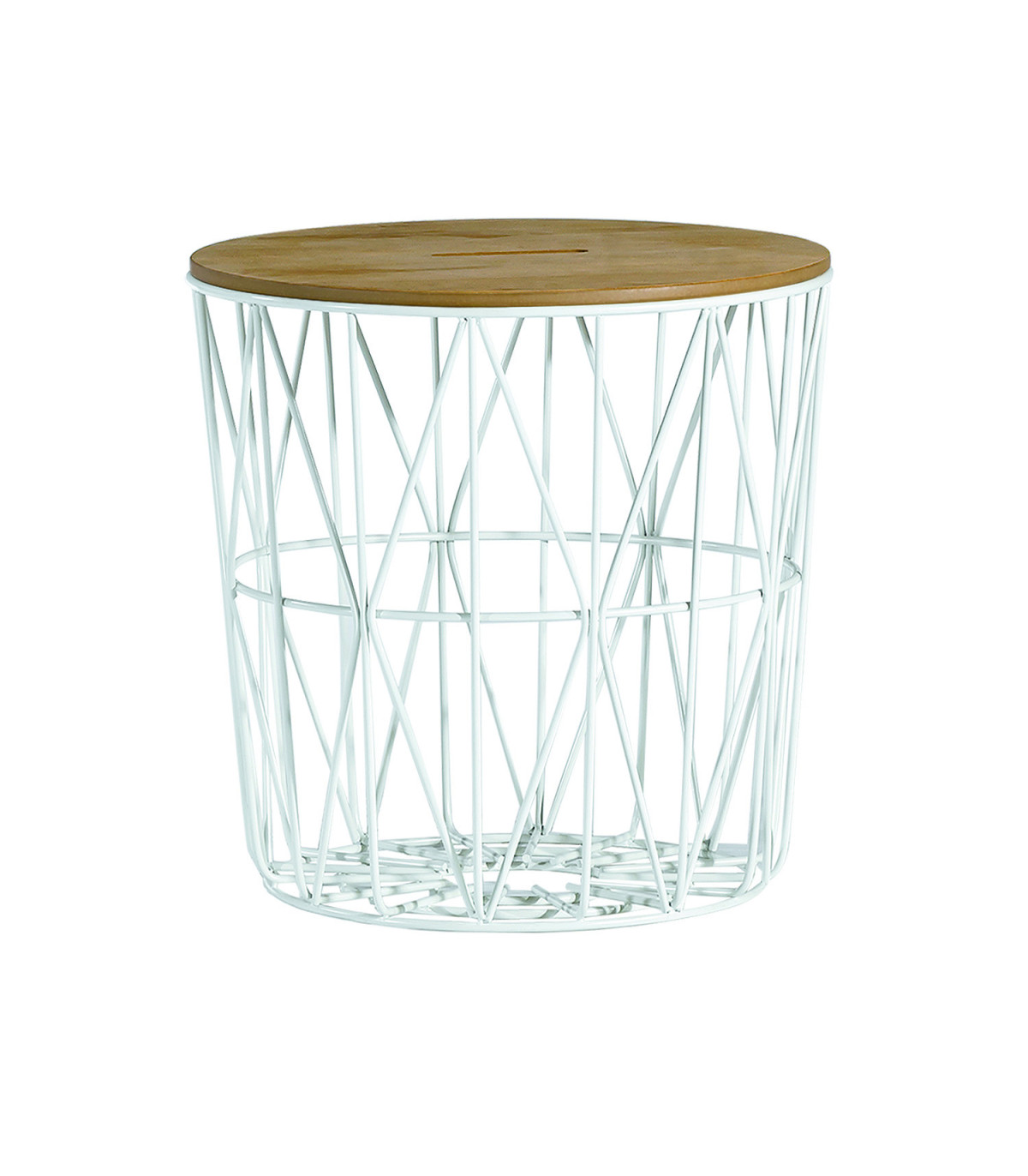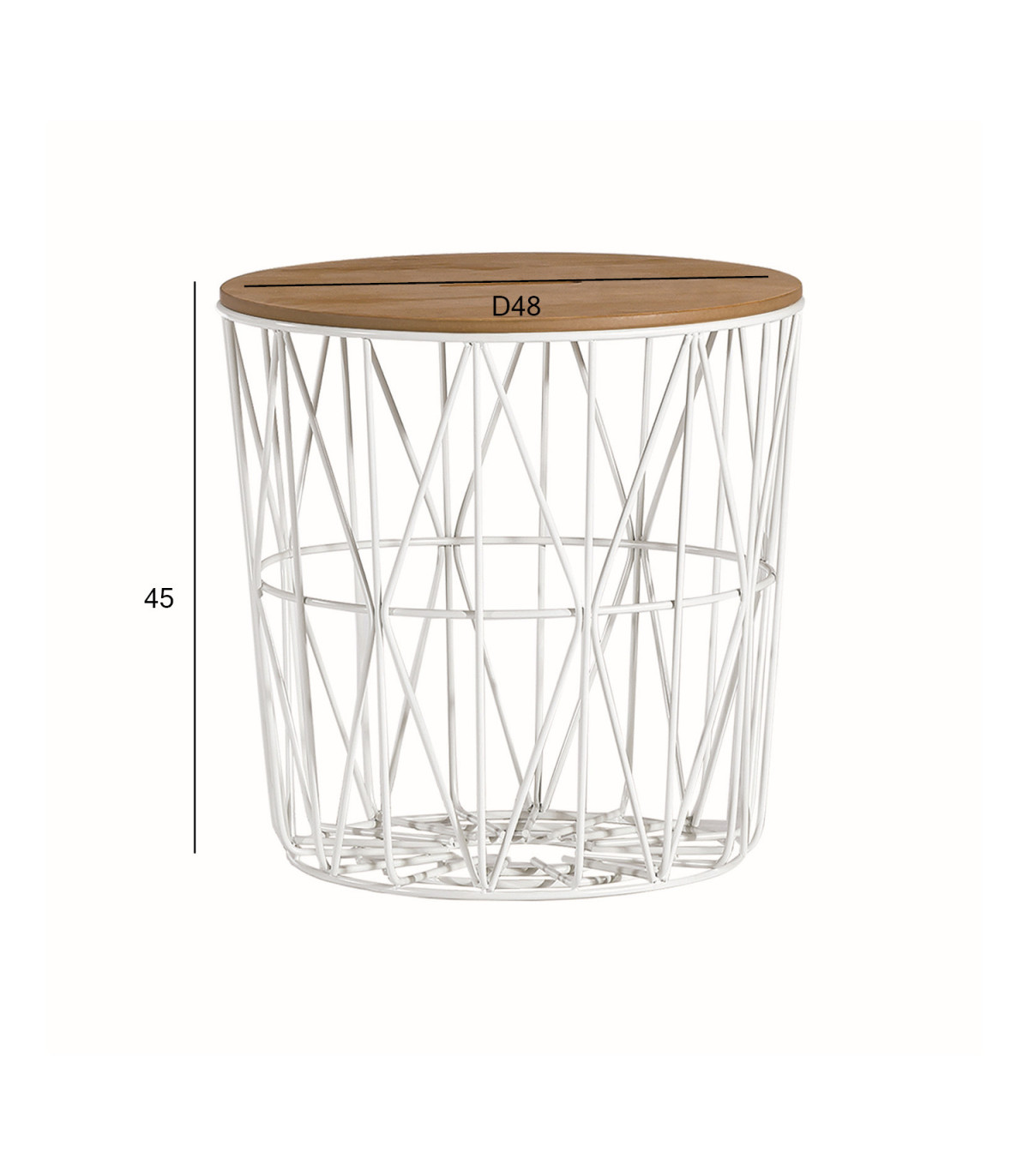Diivanilaud HELENA D48xH45cm. Lauaplaat: 18mm MDF plaat naturaalse tammespooniga, lakitud. Metallist alusraam on värvitud valge pulbervärviga.