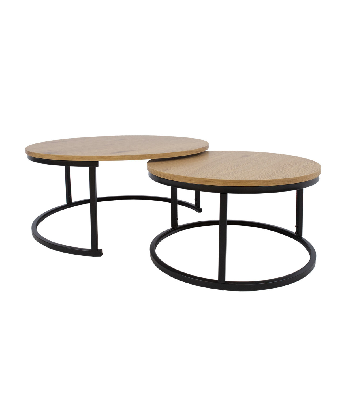 Diivanilaud BRITU 2tk komplektis, hele puit. Lauaplaat on heleda puidu dekooriga ning valmistatud 18mm paksusest MDF plaadist. Laua raam ja jalad on valmistatud metallist ning kaetud musta pulbervärviga. Laudade mõõdud on D80xH35cm, D60xH32cm.