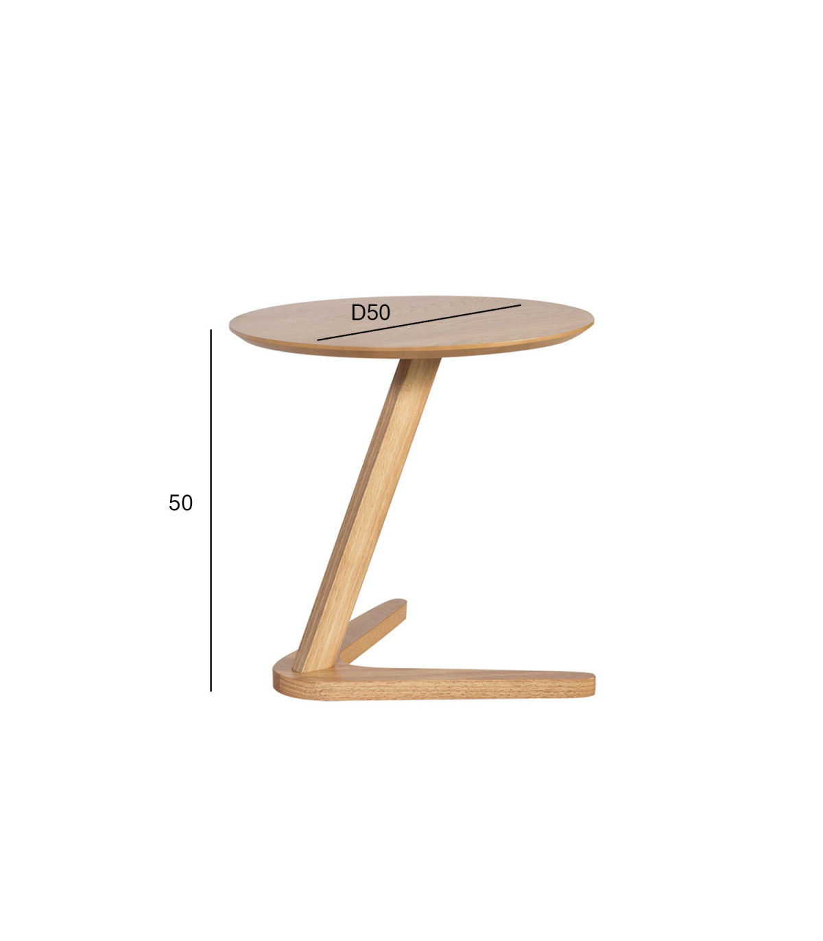 Abilaud LANA D50xH50cm. Lauaplaat: 18mm MDF naturaalse tammespooniga. Jalad ja raam on valmistatud kummipuust. Laud on viimistletud läbipaistva lakiga.