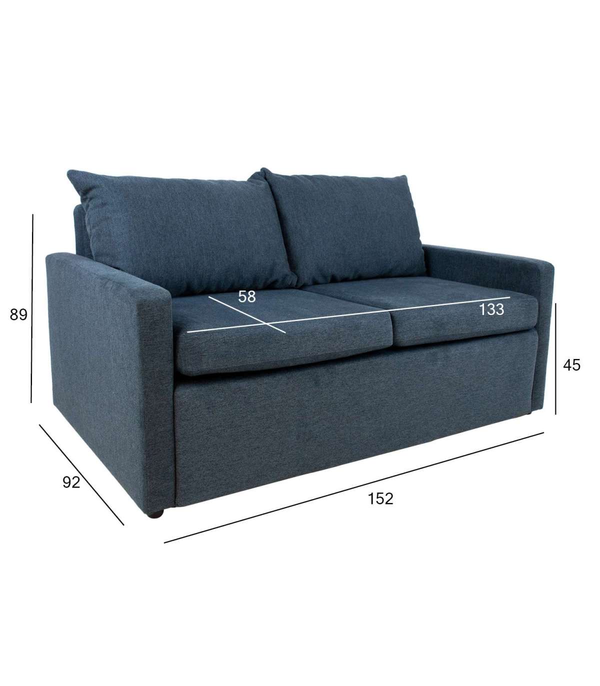 Diivani üldmõõdud on 152x92xH89cm, istme kõrgus 45cm. Magamisosa mõõdud avatuna 134x195cm.