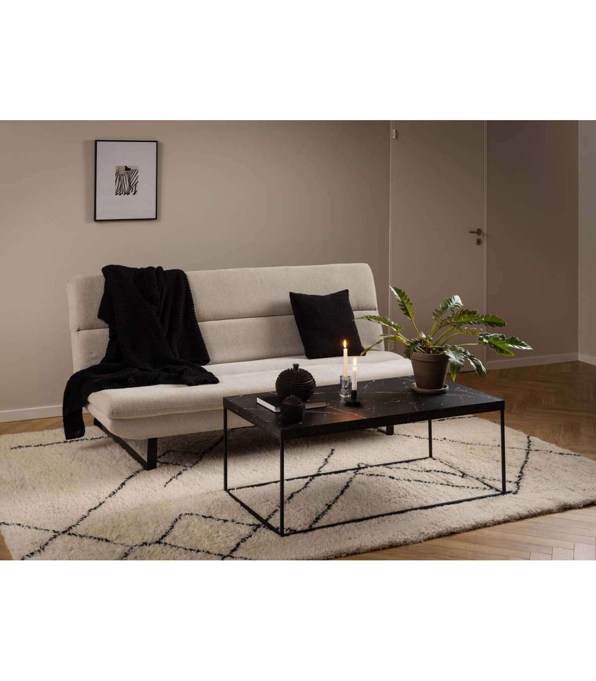 Diivanvoodi on praktiline lahendus külaliste võõrustamiseks. Diivanit on lihtne mõne sekundiga hõlpsasti voodiks muuta. Pehme beež kangas ja horisontaalsed õmblused lisavad disainile elegantsust. Diivanijalad on musta värvi. Tugevad jalad tagavad diivani stabiilsuse. Kangas: 100% polüester, Martindale > 40 000. Jalad: pulbervärvitud teras. Toote mõõdud on 200x124xH91cm.