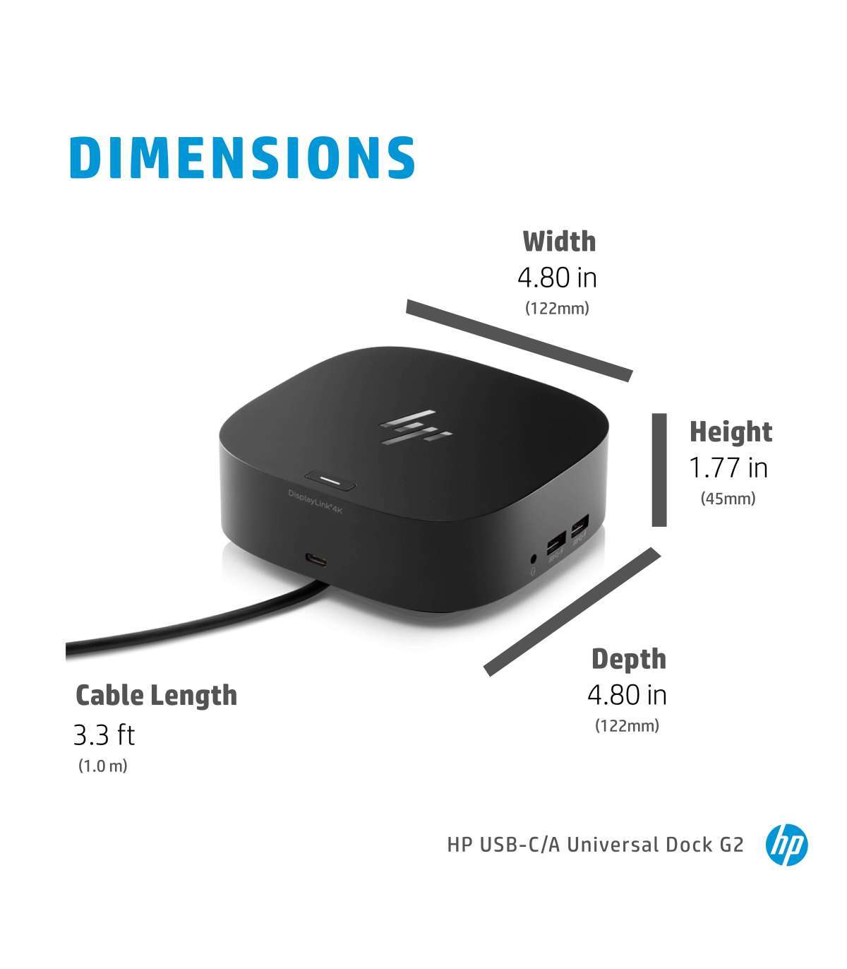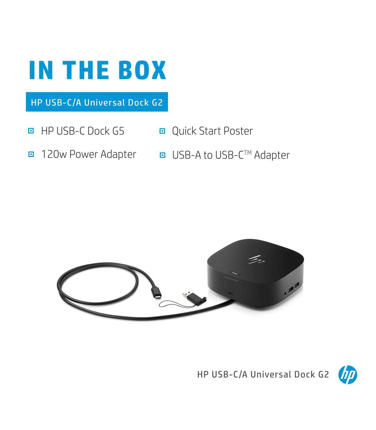HP USB-C/A Universal DisplayLink Dock G2 120W - 4x USB 3.0, 1x USB-C, 2x DisplayPort, 1x HDMI 2.0, 1x RJ-45, 1x combo audio jack, Dual-Monitor support, Apple MAC compatible