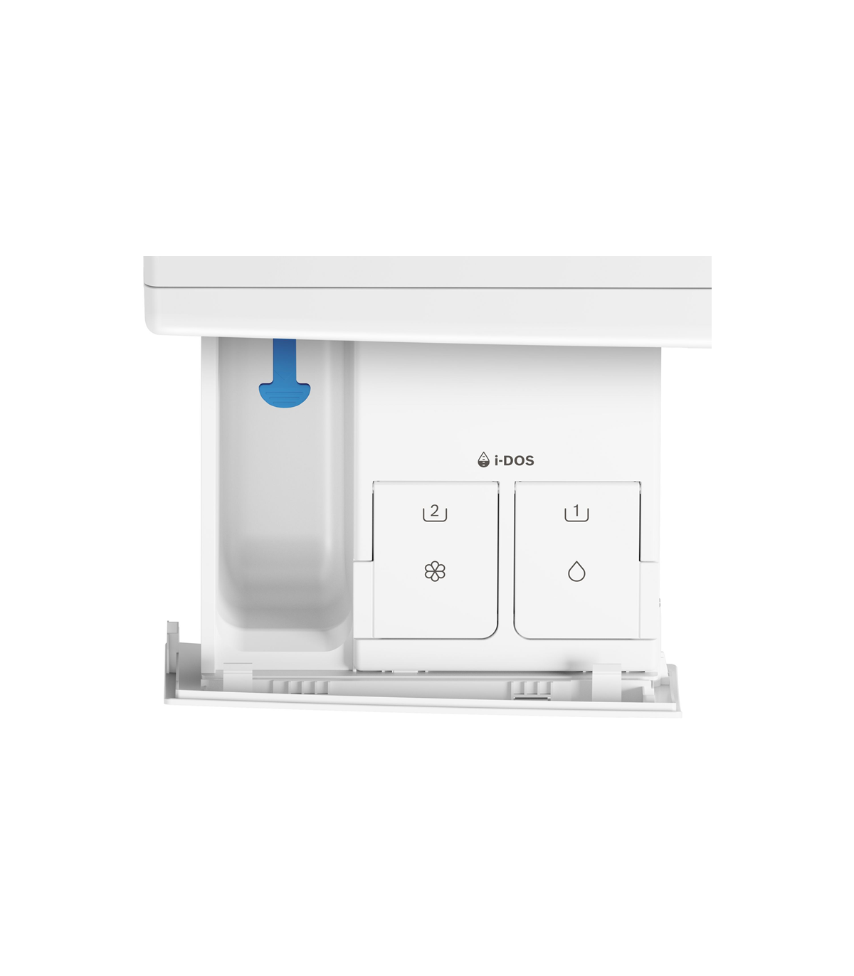 Võta i-DOS automaatse doseerimissüsteemiga oma pesuhooldusest maksimum. Täida pesuvahendi ja loputusvahendi sahtlid ühe korra ning i-DOS andurid mõõdavad edaspidi iga masinatäie jaoks välja täpse pesuvahendi, loputusvahendi ja vee koguse, iga kord. Nii säästad pesuvahendit ja väldid liigset loputamist.