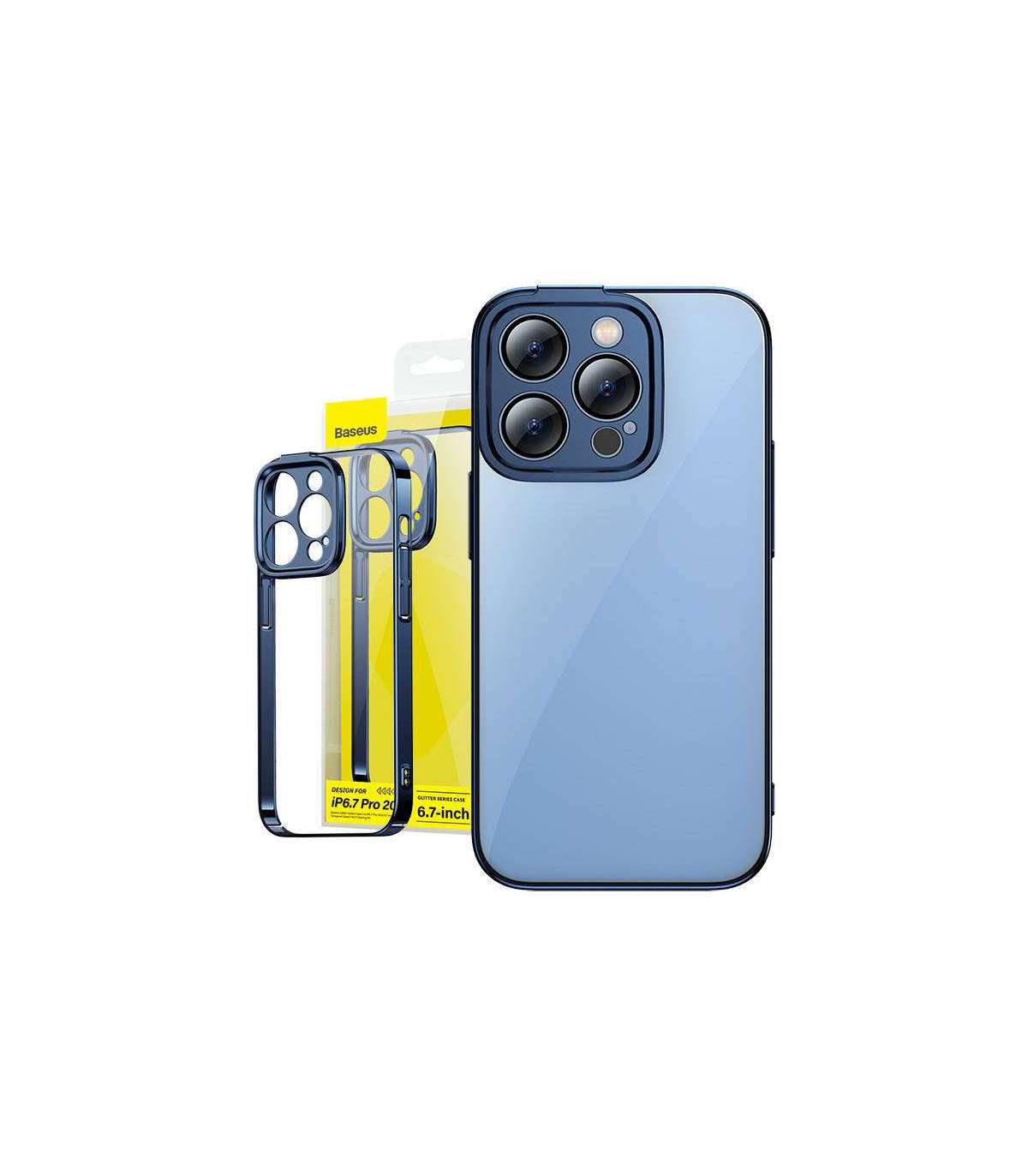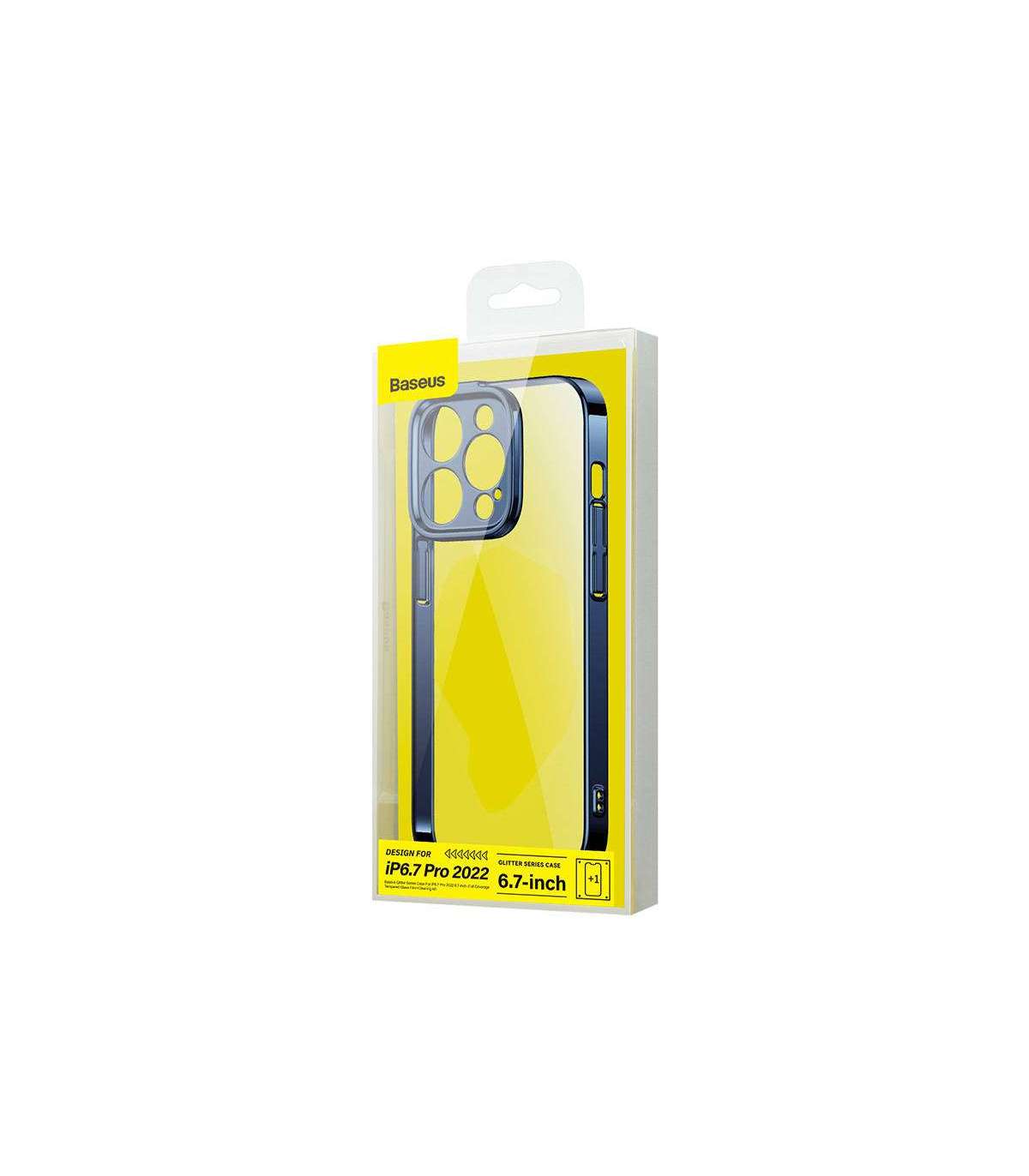 Baseus Glitter Transparent Case and Tempered Glass set for iPhone 14 Pro Max (blue)