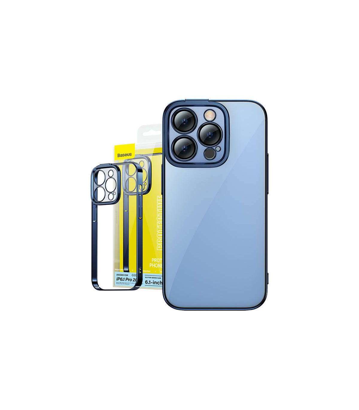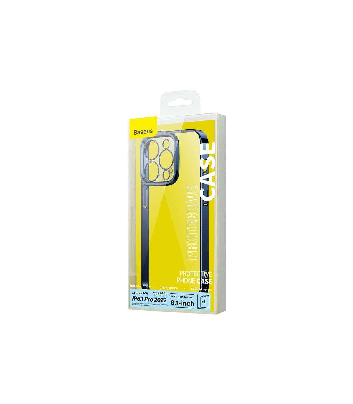 Baseus Glitter Transparent Case and Tempered Glass set for iPhone 14 Pro (blue)