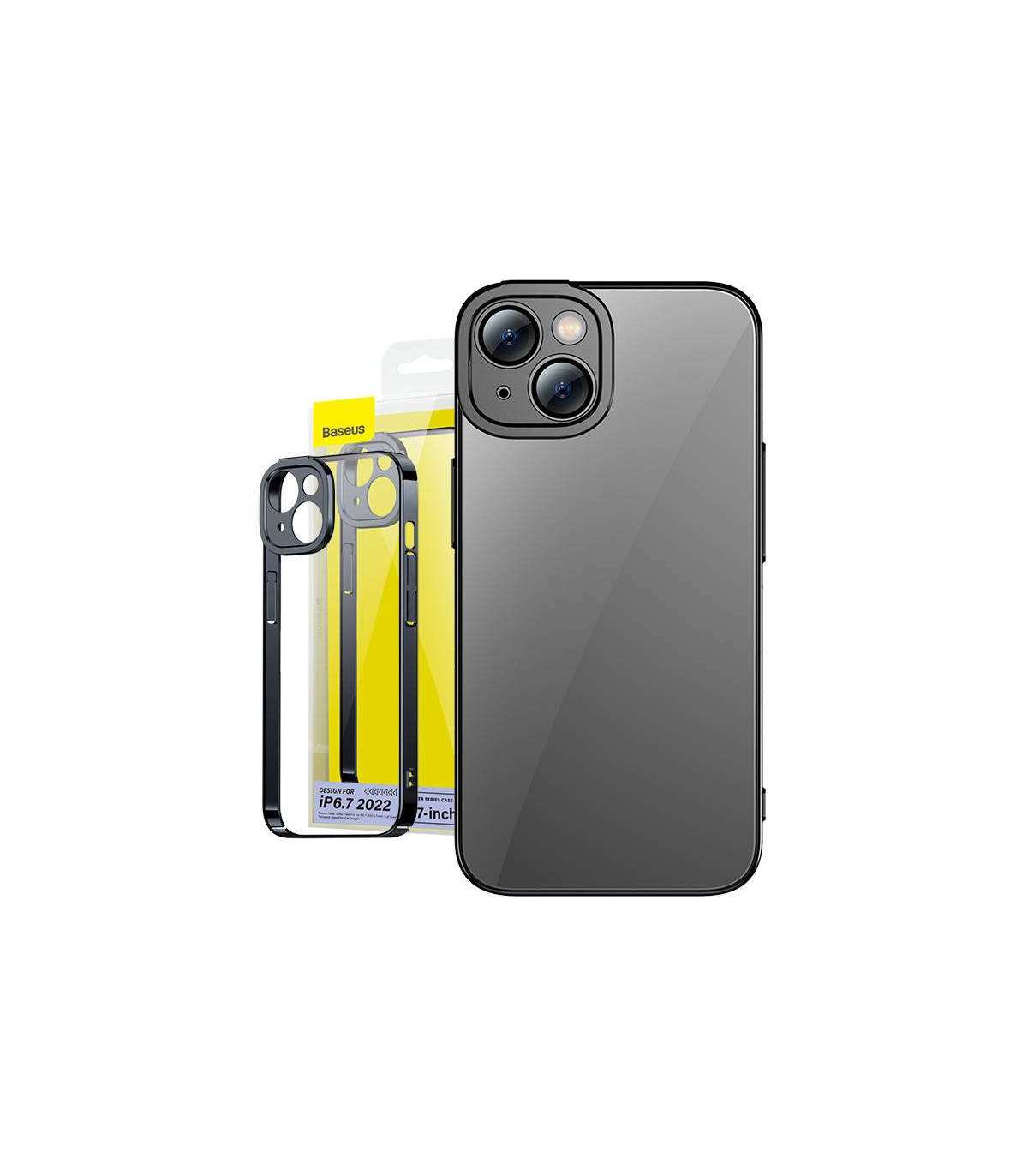 Baseus Glitter Transparent Case and Tempered Glass set for iPhone 14 Plus (black)