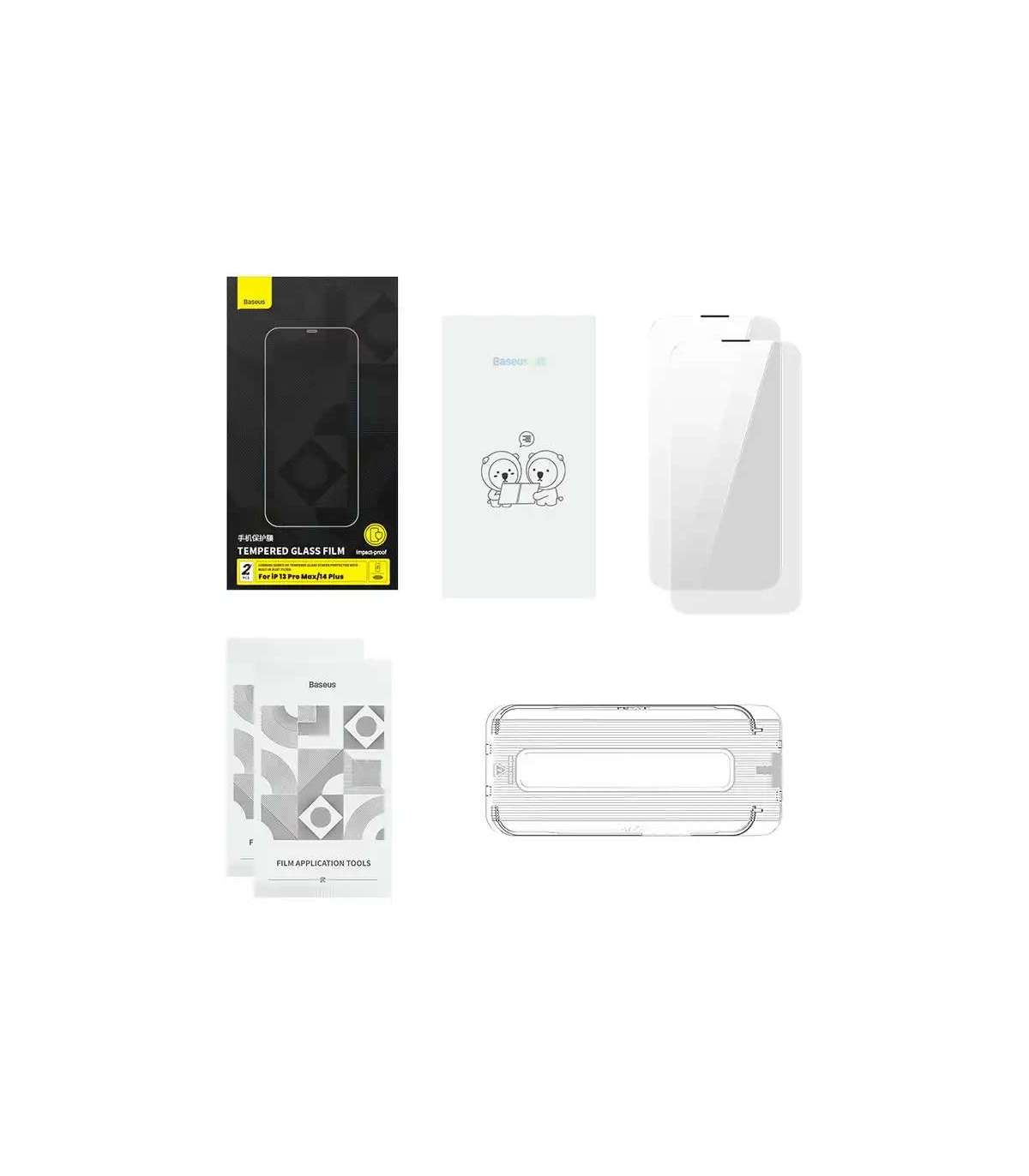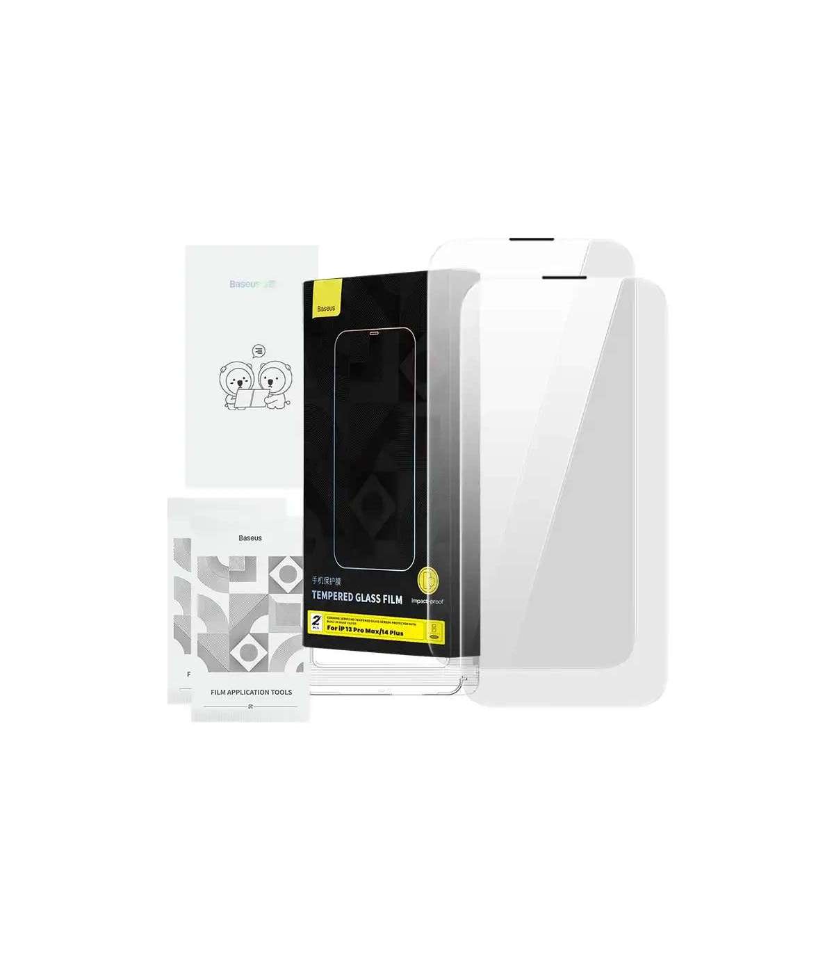 An essential accessory for your phone! The tempered glass we designed specifically for your iPhone comes from Corning, an international technology company that manufactures glass components for Apple. Protect your phone with the best! The high degree of hardness protects the screen from drops and bumps and prevents scratches. It fully covers the screen of the 13 Pro Max/14 Plus series models, and protects the speaker from dust and other contaminants. The glass is highly transparent, so there is no color distortion, and its oleophobic coating eliminates greasy stains and fingerprints. Bet on quality with Baseus!