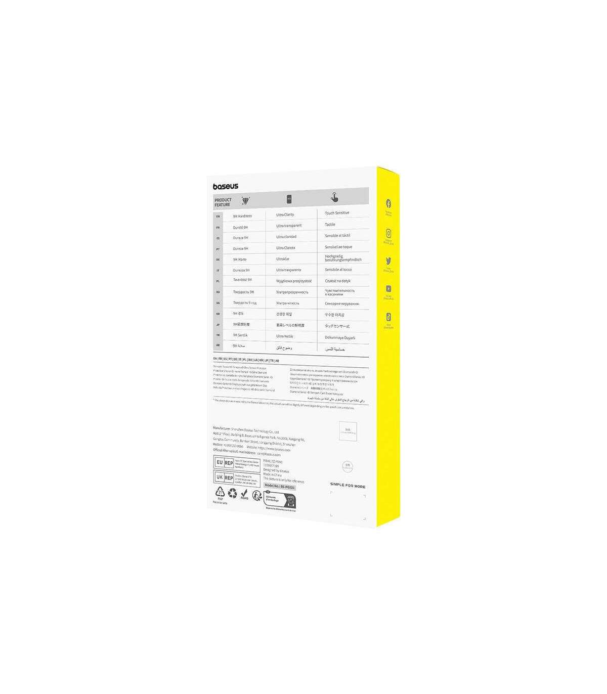 Baseus tempered glass is the perfect protection for your smartphone. It provides excellent impact resistance thanks to a unique spiderweb-like structure that effectively absorbs shocks, minimizing the risk of damage to the screen during a fall. Extremely durable, wear-resistant and scratch-resistant protects your phone from everyday scratches. It offers long-lasting protection without sacrificing image quality or touch sensitivity, offering the perfect compromise between safety and comfort.