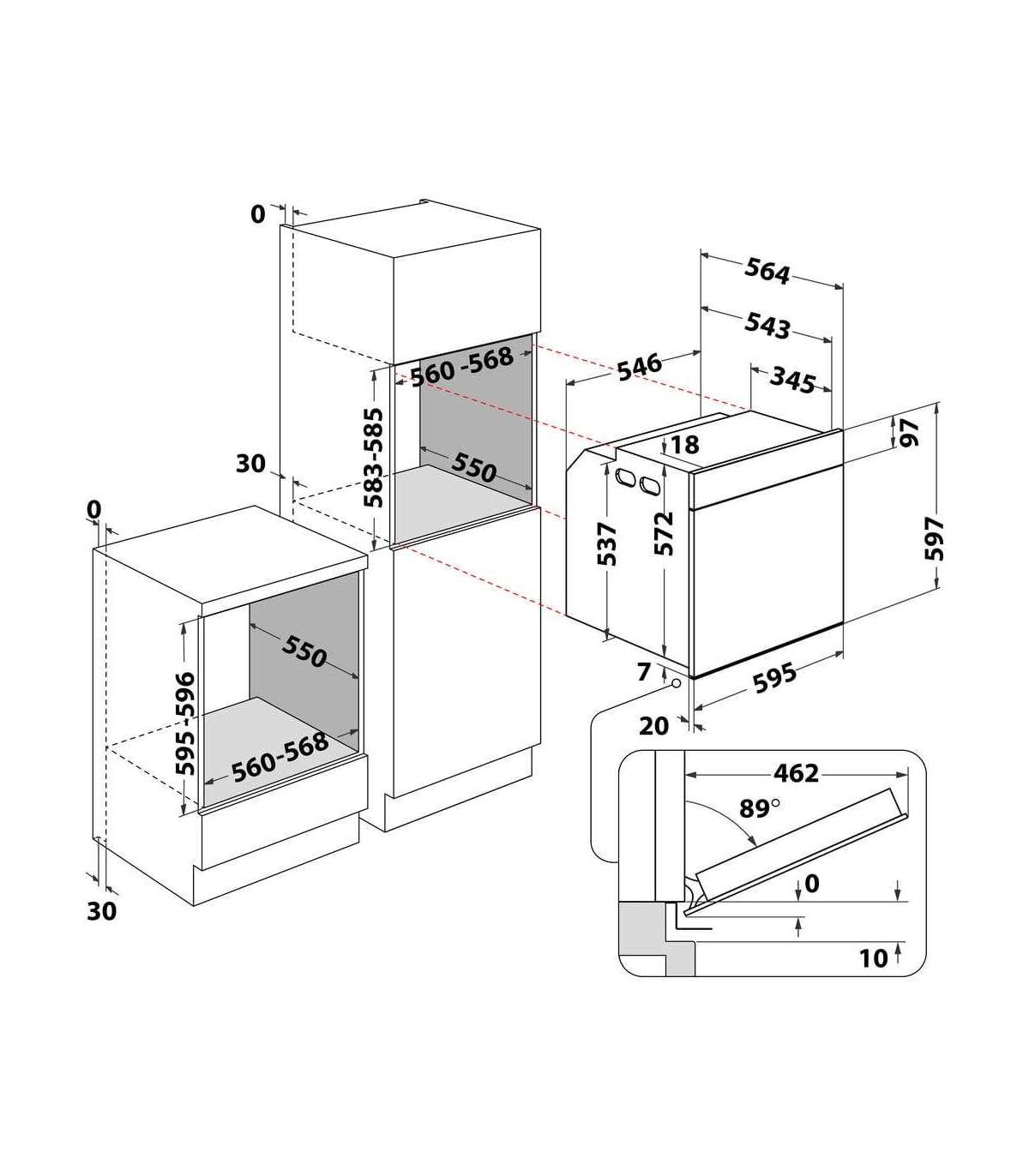 - Installation compartment width (min)