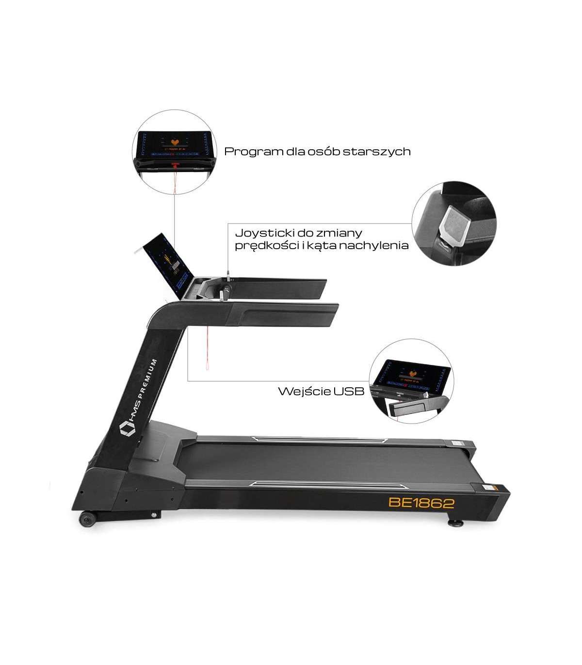BE1862 HMS PREMIUM on SEMI COMMERCIAL klassi treenimisriist, mis on mõeldud väikestele jõusaalidele. Treeningseadme disain võimaldab intensiivset treeningut mugavates tingimustes. Tänu amortisatsioonisüsteemile ei kannata liigesed ja selg pika treeningu ajal. Veelgi enam, kõige vajalik on alati käepärast tänu pudelialusele ja mobiilseadme alusele. Suur jooksuvöö tagab piisava treeningruumi ja ohutusüsteem tagab rahuliku treeningu. Ergonomiline paneel, millel on hästi kujundatud LED-ekraan, muudab teie treeningu sujuvaks ja saate hõlpsasti valida endale sobiva programmi. Kiirus ja kaldenurga muutmiseks kasutage joystick'e, muutes treeningu parameetreid lihtsalt ja kiiresti. Tuleb märkida, et BE1862 on varustatud eakatele kohandatud programmiga. Sel juhul ei pea muretsema kiirusmuutuste või jooksvöö liialt suure kaldenurga pärast. Toote kiirus on vahemikus 0,5 kuni 24 km/h ja kaldenurk 0–15%. Kasutajal on võimalus korraldada täisintensiivne treening isegi juhul, kui ta on kogenud jooksja. Tõukeratas, lisaks suurepärasele tehnilisele varustusele, on ka trendika disainiga. Seda täiustavad LED-lambid, mis valgustavad vööd. BE1862 on vastus kõige nõudlikumate kasutajate ootustele. Spetsifikatsioon: Mõõdud: 219 x 84 x 137 cm Jooksuvöö mõõtmed: 56x157 cm Mootor: elektriline Tootmisvõimsus: 4.5HP / 3300W Jätkuv mootori võimsus: 3.0HP / 2200W Kiirus: 0,5-24 km/h Kaldenurk: 0-15 % Kiirusenuppud (4, 6, 8, 10, 12, 14, 16, 18) Kaldenukud (0, 2, 4, 6, 8, 10, 12, 14) - 8 väärtust Automaatne kiiruseregulatsioon Automaatne kalde reguleerimine Amortisatsioon Südamelöögi mõõtmine - puutetsensorid Südamelöögi mõõtmine - telemeetri vööt (vööd pole kaasas) Toide: 230V Mobiilseadme alused Pudelihoidja Ohutusüsteem Transporti rullikud Arvuti Ekraan Puudutus LED Valikuline: Kinomap'i, DelighTech'i rakenduste tugi Treeningprogrammid: 30 (20 jooksuprogrammi, 4 kohandatud programmi, 2 HRC programmi, kus treeningseade kohandab kiirus ja kalle kasutaja pulsi järgi - 60% ja 80% maksimaalsest pulsilöögist, THR programm, mis kasutatakse oma pulsilöögi tasemele sisenemiseks, "madala kiirus" programm, mis on kohandatud eakatele, "rahustav" programm, mis rahustab keha, kus kiirus järk-järgult väheneb. Viimane programm on käsitsi programm, kus iga parameetrit kontrollib kasutaja) USB-port (laadimisportina) Max. kasutaja kaal: 180kg Arvuti funktsioonid: Aeg Kiirus Distance Pulss Kalorid Keharasv Märkused: 2-aastane garantii koduseks kasutamiseks 1-aastane garantii kommertskasutuseks Importija: Abisal Ltd. | Poola | 41-807 Zabrze | Pyskowicka tänav 17 | e-post: abisal@abisal.pl Abisal Ltd. kinnitab, et ettevõtte poolt müüdud tooted on ohutud ja vastavad 12. detsembri 2003. aasta Üldise tooteohutuse seaduse nõuetele. (Ajakiri seaduse kohta 31. detsember 2003)