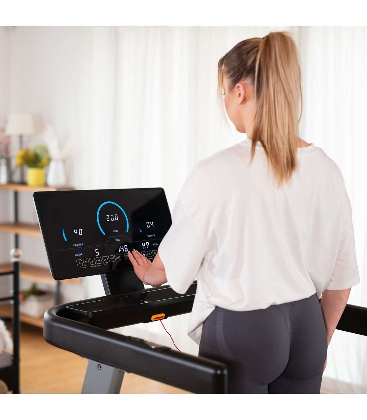 BE5838 jooksumismasin on varustatud LED-ekraaniga arvutiga, mis pakub 36 treeningprogrammi, 3 kasutajaprogrammi ja 1 käsiprogrammi, nii et igaüks võib leida endale sobiva programmi. Sisseehitatud keharasva (keharasvaprotsent) funktsioon ja aja, vahemaa, kiirus, kalorid, pulss mõõtmine aitavad jälgida edusamme ja kontrollida tervise parameetreid, samas kui mugavad nupud käepidemetel võimaldavad kiiresti reguleerida kiirus ja kaldenurk, katkestamata treeningut.