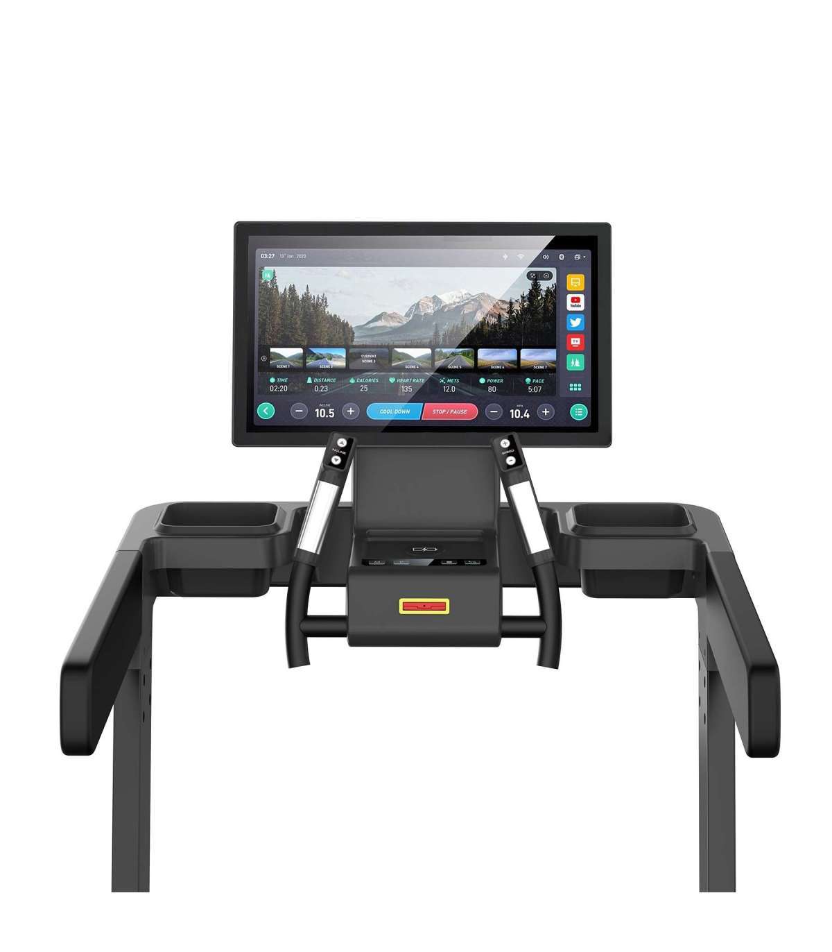 BluetoothSpeakerWiFiAndroid 11RAM 2 GBMemory 16 GBFoldable treadmill: yesSupport for iOS devices: yesDimensions when folded: 158 x 120 x 88 cmMultimedia panel: 57 x 34 cmUniversal handle: yesSafety key: yesTouch sensors: yesTransport wheels: yesSpeakers: yesInductive charging: yesApps: yesPossibility of connecting a telemetry belt (heart rate sensor): yes, via BluetoothNumber of workout programmes: 40 (including 4 Real Scene)Maximum user weight: 160 kgWeight: 120 kgRemarks:Not for commercial use24 months warrantyImporter: Abisal Ltd. | Poland | 41-807 Zabrze | Pyskowicka Street 17 | e-mail: abisal@abisal.plAbisal Ltd.. declares that the products sold by the company are safe and meet the requirements contained in the Act on General Product Safety of December 12, 2003. (Journal of Laws of December 31, 2003)