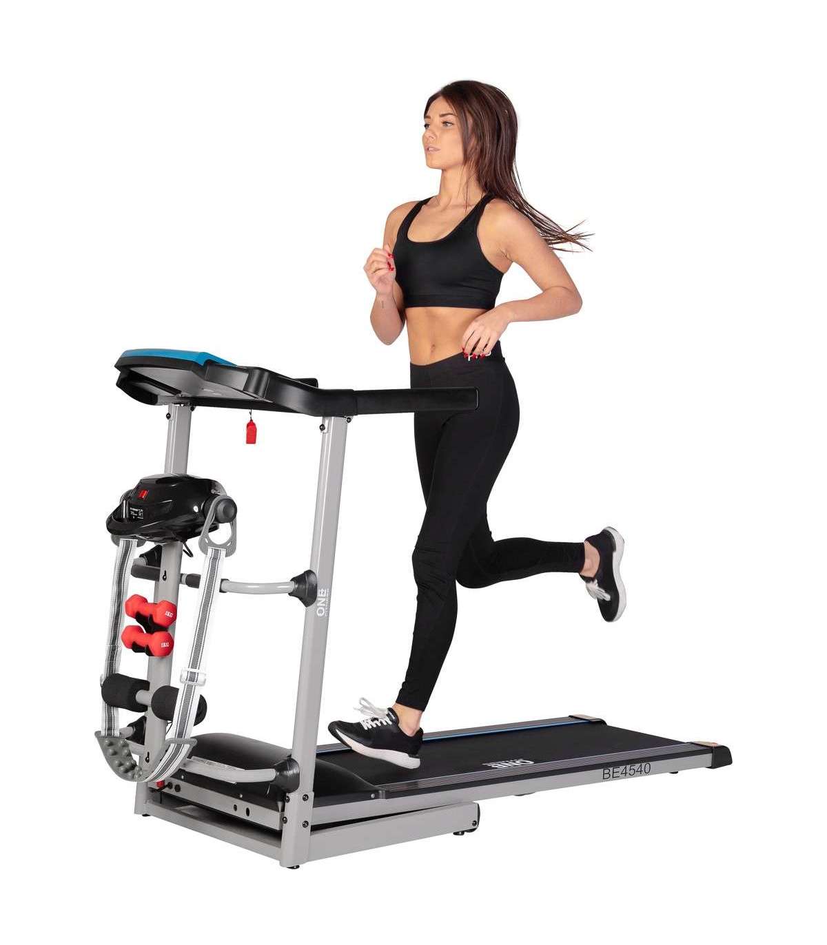 BE4540 ONE FITNESS on jooksulint ja massaaži kombinatsioon. Komplekti kuuluvad ka pöörlev ketas ja hantlid. See on kompaktne toode, millel on libisemiskindel jooksuriba ja automaatse kiirusregulaatoriga mootor. Toode on valmistatud parimatest kvaliteetsetest materjalidest. See on stabiilne ja ohutu seade, mis on mõeldud koduste treeningute jaoks. Oma mõõtmete ja šokkide neelamise süsteemi tõttu tagab konstruktsioon mugava treeninguala. Ergonoomiline juhtpaneel võimaldab kasutajal mugavalt hallata arvutifunktsioone, nagu aeg, kiirus ja kaugus. Kahtlemata on eeliseks ka sisseehitatud kõlarite ja USB-pordi komplekt, mille abil saab kuulata oma lemmikmuusikat.