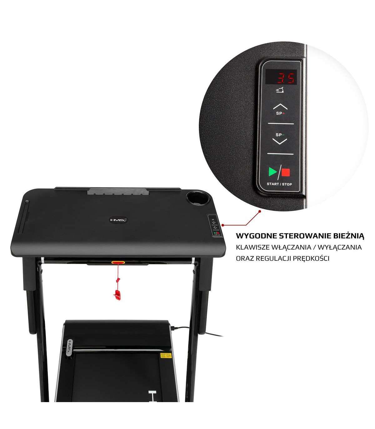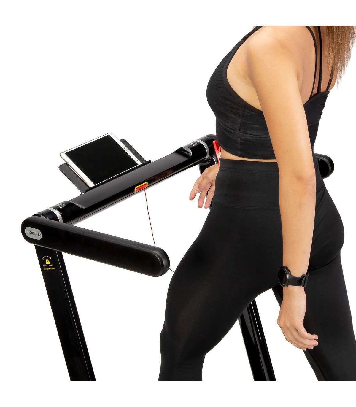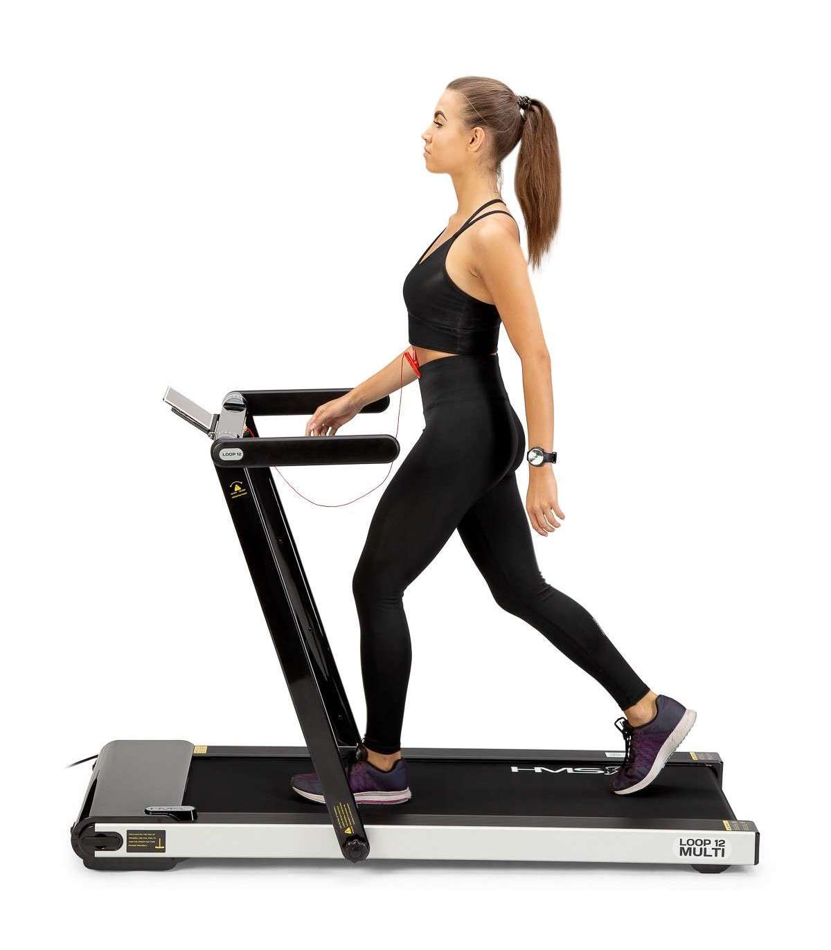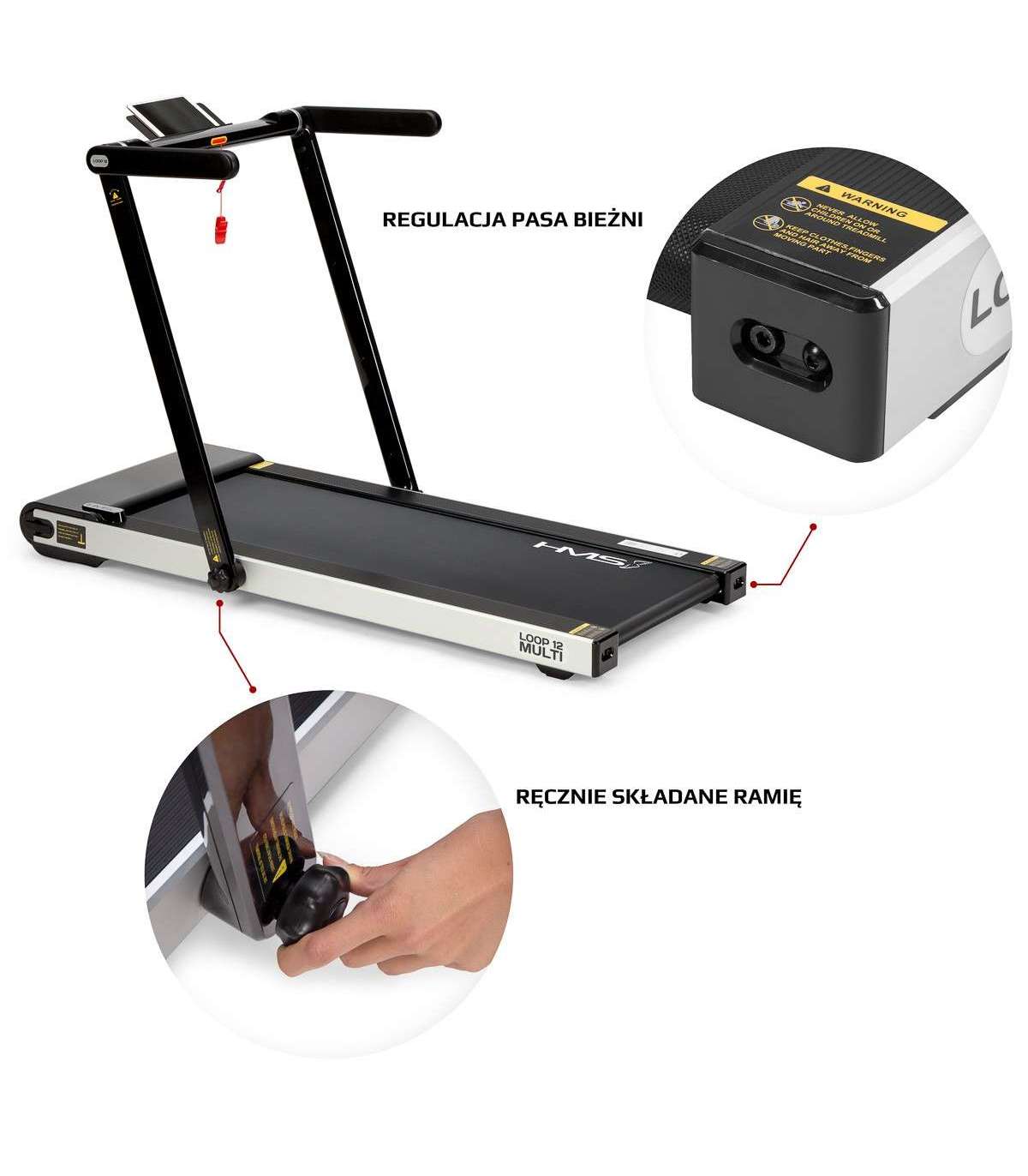 LOOP12 MULTI jooksuriba on 21. sajandi tehnoloogia. See on kaasaegne ja intuitiivne. Jooksuriba modernne disain kinnitab, et see on loodud kõige elegantsemas vormis. Mis eristab seda mudelit teistest, on võimalus paigaldada konsoolile laud. Seega on võimalik ühendata töö ja füüsiline tegevus. Laua paigaldamine piirab jooksuriba kiirus 6 km/h; sel viisil on lihtne sülearvutit kasutada kõndimise ajal. Laual on hoidja pudelile või kruusile, samuti hoidja tahvelarvutile. Erilise juhtpaneeli tõttu saab kasutaja jooksuriba igal ajal aeglustada või välja lülitada. See lahendus on suurepärane alternatiiv kontoritöötajatele. Kui laud on eemaldatud, saad klassikalise seadme, mis on kohandatud intensiivseks treenimiseks kodus. Jooksuriba disain loob mugava treeningruumi ja silikoongeeli neelamissüsteem tagab kerge ja elastse jooksmise ja põlveohutuse. Ergonomiline juhtpaneel võimaldab kasutajal mugavalt hallata seadeid, nagu aeg, kiirus, kaugus, kalorid ja astmete arv. Samuti on see varustatud väga kasulike nuppudega kiireks kiiruseselektimiseks. Kasutaja saab kiiruse ühe liigutusega seada 3 või 5 km/h. Bluetooth-funktsiooni tõttu saab jooksuriba hõlpsasti ühendada FitShow rakendusega, mille saab alla laadida mobiiltelefonile käsiraamatut skaneerides. Tänu sellele rakendusele saab jälgida treeninguid ja salvestada nende tulemusi. Seega saab kasutaja analüüsida oma edusamme. Peale selle saame rakenduse kaudu seadistada endale sobiva treeningprogrammi. Ärge muretsege kiiruse muutmise pärast. Jooksuriba täiendav eelis on selle suurus, tänu kokkuvolditud raamidele ei võta see palju ruumi. LOOP12 MULTI-d on samuti lihtne transportida tänu paigaldatud transpordiratastele, mis võimaldavad vertikaalset ja horisontaalset transporti ilma igasuguste eriponnistusteta. LOOP12 MULTI on ideaalne valik kõigile, kes soovivad kodus, väikses ruumis aeroobset treeningut teha. See on samuti suurepärane lahendus neile, kes ei ole siiani teadnud, kuidas ühendada tööd ja treeningut. Spetsifikatsioon: Tipumootori võimsus: 2.5HP / 1850W Pidev mootori võimsus: 1.25HP / 916W Kiirus vahemik (km/h): 1 ÷ 12 Kiirus vahemik laua olemasolul (km/h): 1 ÷ 6 Aluse mõõtmed 27.5 x 9.5cm Jooksuriba mõõtmed: Pikkus (mm): 1250 laius (mm): 450 Kompuuter (mõõtmine): Aeg: jah Kaugus: jah Kiirus: jah Kalorid: jah Astmete arv Kompuuter (lisavarustus): bluetooth: jah MP3: ei helikõlarid: ei Lisavarustus: rullikud / rattad: jah konsoolile paigaldatud laud Jooksuriba mõõtmed (lahti): pikkus (mm): 1515 laius (mm): 770 kõrgus (mm): 1030 Kas saab kokku voltida?: jah Mõõtmed (kokku volditud): pikkus (mm): 1581 laius (mm): 770 kõrgus (mm): 158 Laua mõõtmed: pikkus (mm): 405 laius (mm): 842 Kompuutri (funktsioonid): toetus mobiilirakendustele: jah / Fit Show Max. kasutaja kaal (kg): 120 Toote kaal (kg): 43 Märkused: Mitte kaubanduslikuks kasutamiseks 24 kuud garantii Importija: Abisal Ltd. | Poola | 41-807 Zabrze | Pyskowicka tänav 17 | e-post: abisal@abisal.pl Abisal Ltd. kinnitab, et ettevõtte poolt müüdavad tooted on ohutud ja vastavad 12. detsembril 2003 vastu võetud Üldise tooteohutuse seaduse nõuetele. (Ajakiri seaduste detsember 31, 2003)