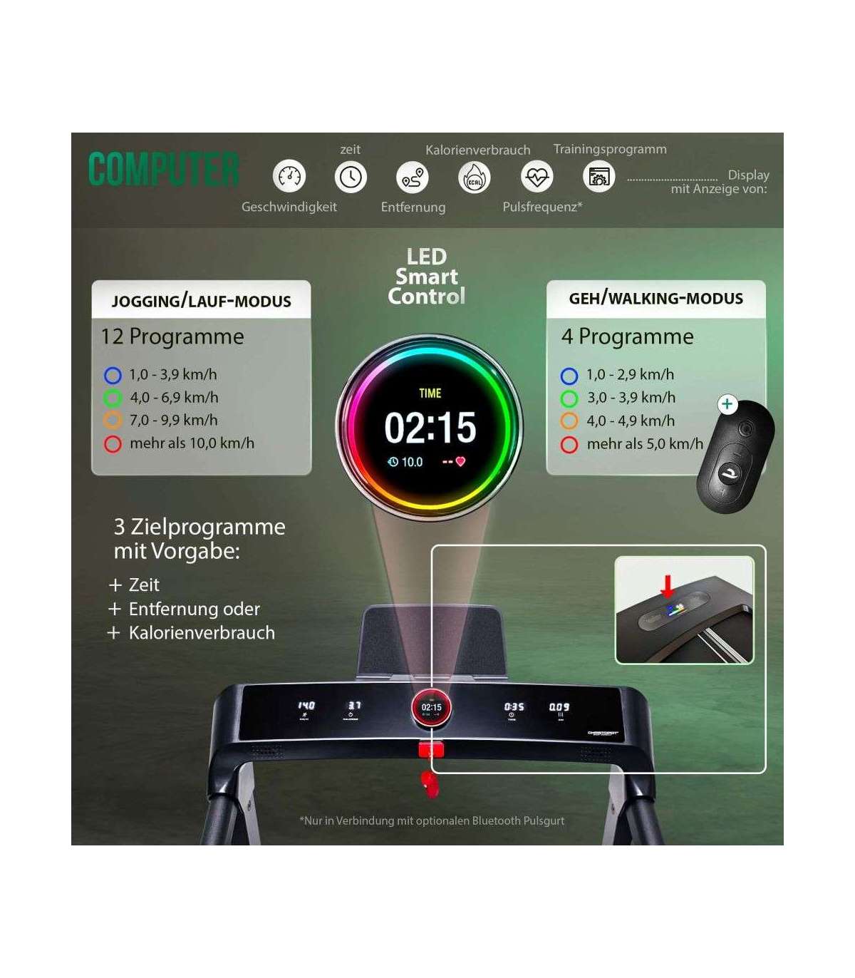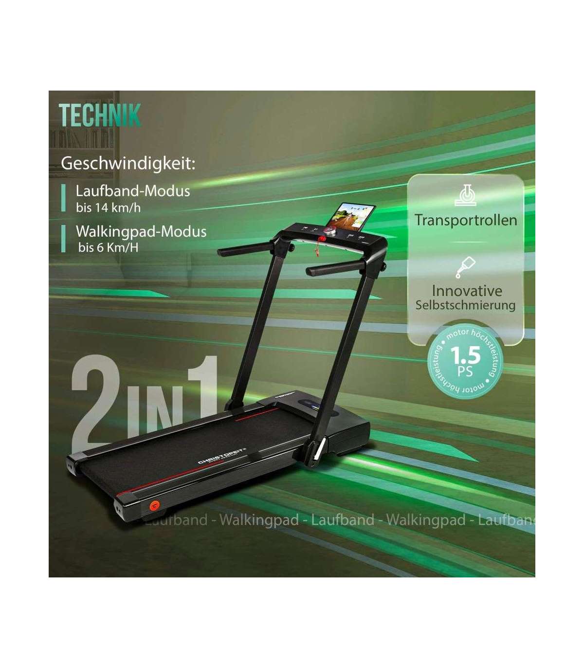 Kogege mitmekülgsust ja efektiivsust selle Christopeit 2in1 jooksulindiga, mis pakub Teile käimislinti ning jooksulinti ühes seadmes. Selle innovatiivse seadmega saate kohandada iga treeningu oma vajadustele sobivaks ning treenida kodus või kontoris hoolimata ilmast. Jättes käepidemed üles tõstmata, saate kasutada seadet käimislindina ning seadme maksimaalseks kiiruseks on 6 km/h. Tõstes käepidemed üles on seadme maksimaalseks kiiruseks 14 km/h, mis on ideaalne jooksutreeninguks. Christopeit 2in1 jooksulindil on sisseehitatud kõlarid - nii saate kuulata oma lemmikmuusikat treeningute ajal.Seade on ühilduv Kinomap ning Fithome rakendustega.Tootja on: Christopeit (Saksamaa).Täpsemalt:Ekraan: LEDTreeningprogramme: 20Mootor: 0,75 HPKiirus: 1-14 km/hJooksuraja suurus: 110 x 40 cmMõõdud: 139 x 68 x 110 cmMõõdud kokkupanduna: 155 x 68 x 18 cmToote kaal: 34,5 kgMaksimaalne kasutajakaal: 120 kg