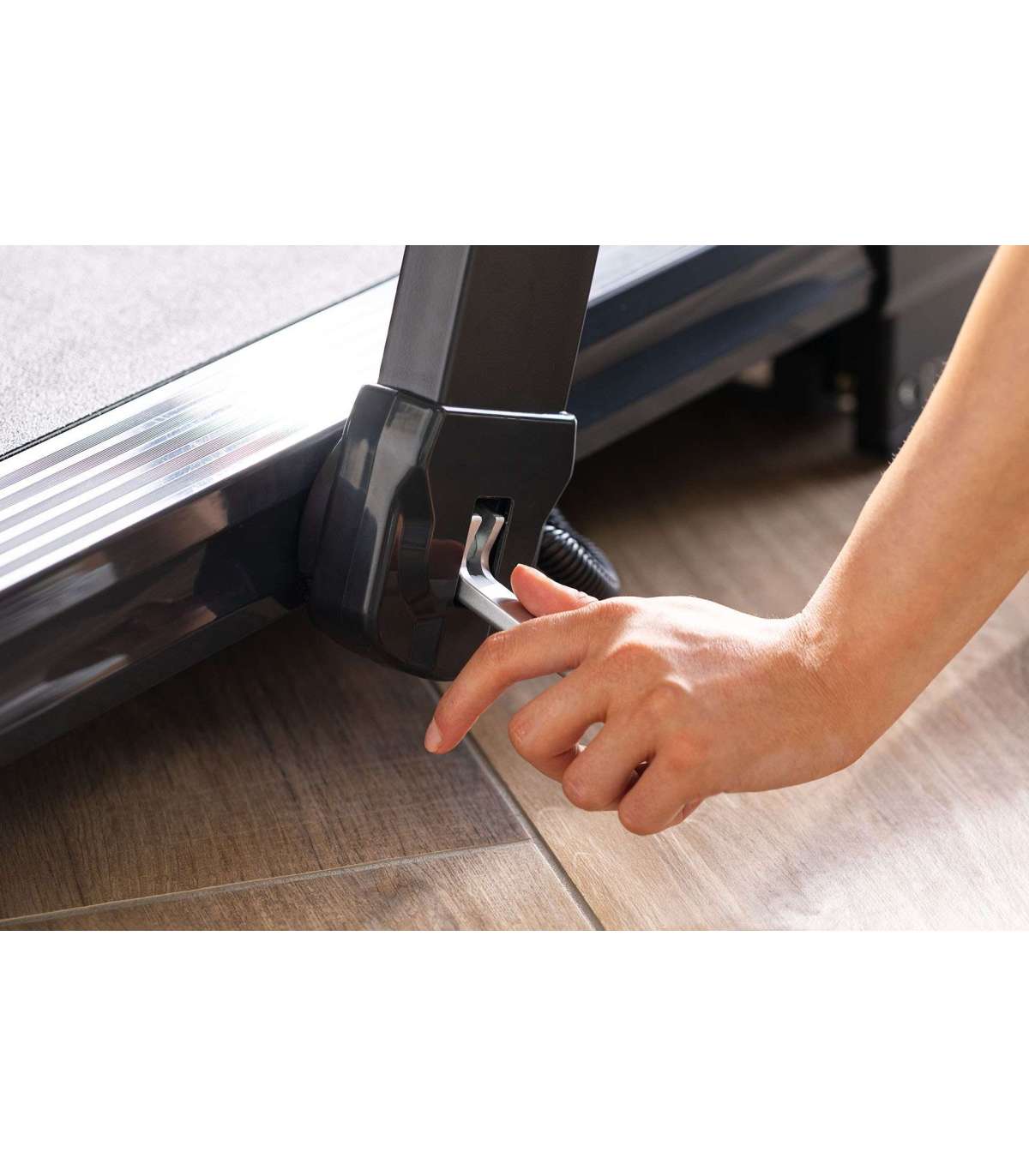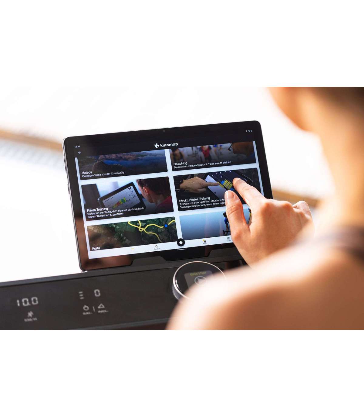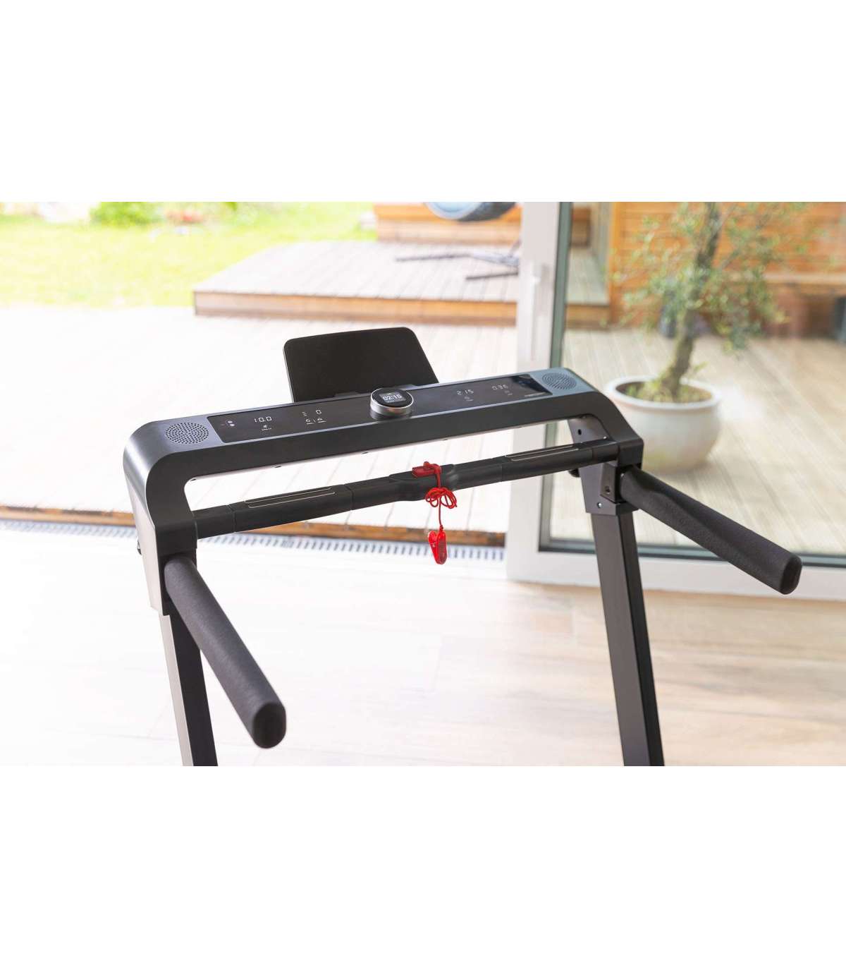 Jalutamise ja jooksmise treening võib suurendada heaolu, viia keha toonimiseni ja üldise füüsilise vormi paranemiseni ning suurendada rasvapõletust. Christopeit TM3000S jooksulint treenib peaaegu kõiki keha lihaseid, olgu siis jalutamisel, kiirkõnnil või jooksmisel. Christopeit TM3000S jooksulint innovaatilise žestikontrolliga võimaldab läbi viia praktiliselt igasugust jooksmistreeningut eesmärgipärasel viisil, sõltumata ilmast.Ekraani on lihtne kasutada ja sealt saab ülevaate kõigist olulistest andmetest ühe pilguga. Valida saate 15 treeningprogrammi hulgast või treenida vastavalt oma ajakavale, distantsile või ligikaudsele kalorikulule. Pulsi jälgimine treeningu ajal on võimalik käpidemetesse integreeritud käepulsiandurite abil. Südame löögisageduse mõõtmine on võimalik koos ühilduva Bluetooth südame löögisageduse rihmaga.TM 3000S jooksulint on varustatud innovaatilise žestikontrolliga. Vastavate andurite abil saate lihtsalt oma käsi liigutades käivitada, peatada või reguleerida jooksulindi kiirust.Kaasaegset juhtimisnuppu ekraaniga kasutatakse jooksulindi sisselülitamiseks ja väljalülitamiseks, programmide valimiseks ning kiiruse reguleerimiseks vahemikus 1 - 16 km/h (0,1 km/h kiiruse kaupa). Selles mudelis saab elektroonilist kallet reguleerida ka 15 tasemel. 15-kraadine elektriline kaldereguleerimine võimalike mägironimiste jaoks, transpordirattad lihtsaks asukohamuutmiseks ja kokkupandav mehhanism ruumi säästlikuks hoiustamiseks täiendavad seadme funktsioone.Jooksulint on ühilduv Kinomap rakendusega. See võimaldab meelelahutuslikku ja interaktiivset treeningut ning treeningandmete salvestamist Androidi või IOS seadmetega. Pärast testimisperioodi saab Kinomap rakendust osta tasulise kuutellimusena.100% eelnevalt kokkupandud15-kraadine elektriline kalde reguleerimineTreeningprogramme: 16Kiirus: 1-16 km/hMootor: 2.5 HPJooksupind umbes 122 x 45 cmToote kaal: 42 kgMaksimaalne kasutaja kaal: 120 kgMõõdud: 150 x 75 x 115 cmMõõdud kokkuvoldituna: 181 x 75 x 22PS02_TM3000S_2350.jpg 164.31 KBMaksimaalne treening/minimaalne hooldusVõimas 2.5 HP mootor võimaldab kiirust kuni 16 km/h. TM 3000S kandevõime on 120 kg ja see täidab kõik ootused efektiivseks treeninguks. Integreeritud jooksulindiõlitamine vabastab Teid lindi hooldamisest ning jätab rohkem aega treenimiseks.PS03_TM3000S_2350.jpg 103.92 KBInnovatiivne kontrollJooksulinti saab kontrollida tänapäevasest ja ajatust pöördnupust. Kohene reageerimine ja intuitiivne pööramine/vajutamine tagavad kiire ja lihtsa kontrolli seadme üle. Lisaks on TM 3000S-i võimalik kasutada ka uudsel viisil - žestidega. Liigutades kätt sensori kohal vastavas suunas saab kontrollida seadme kiirust ning käivitada või peatada seda.PS04_TM3000S_2350.jpg 126.36 KBLihtne hoiustamineJooksulinti saab lihtsasti hoiustada nii seina najale kui voodi/diivani/laua alla, kõrguseks on seadmel siis 30 cm. Trenažöör tarnitakse Teieni 100% kokkupanduna ning on koheselt valmis kasutamiseks.