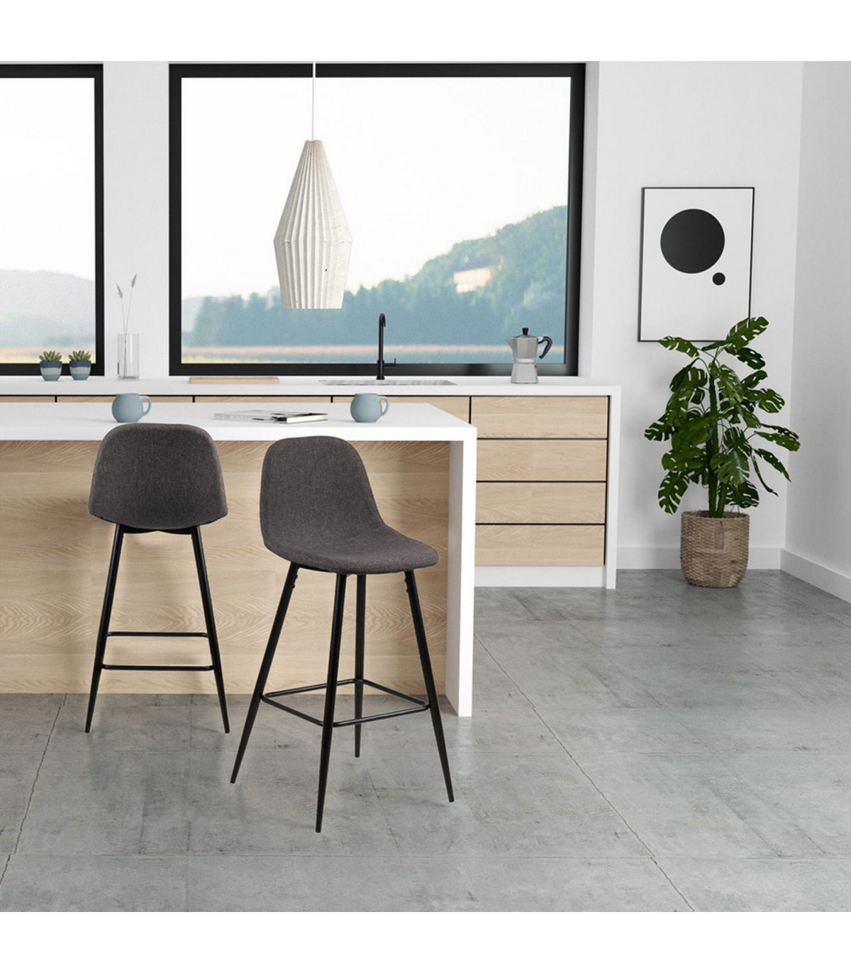 Baaritool madal WILMA 43,5x48,5xH91cm. Istme kõrgus 65cm. Kangas: Sawana grey 5, 100% polüester, Martindale: > 25.000, jalad/jalatugi: must metall. Kaalupiirang: 110kg.