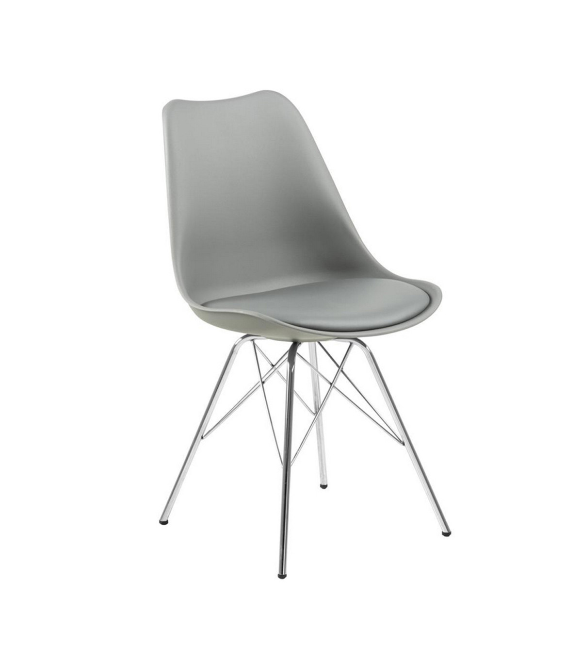 Stiilne ja ajatu söögitool. Orgaanilise kujuga iste sobib mugavalt selja loomuliku kumerusega, aidates säilitada hea kehahoiaku. Pehme istumisosa pakub pikkadeks õhtusöökideks mugava olemise. Istet toetab kroomitud alus, mis täiendab tooli moodsat välimust. Iste on plastikust, istmepadi on kaetud kunstnahaga. Istumiskõrgus 49cm. Kaalupiirang: 110kg. Mõõdud 48,5x54xH85,5cm.