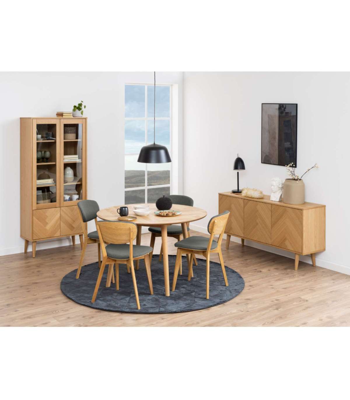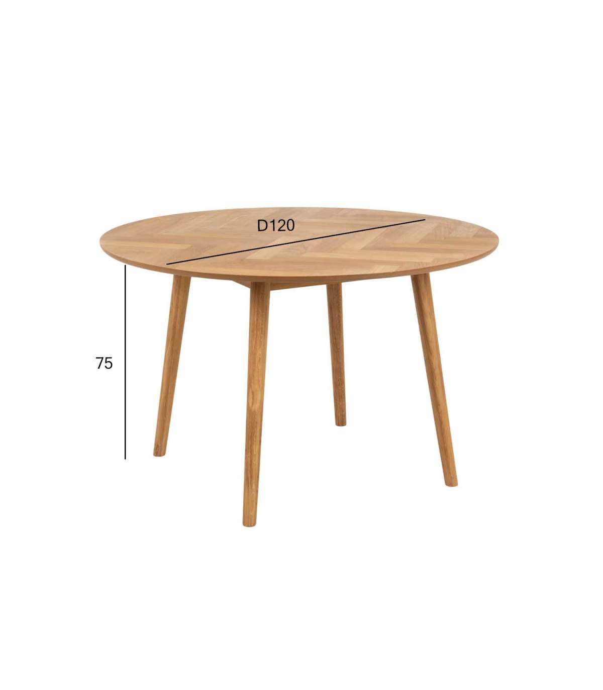 Põhjamaisest disainist inspireeritud söögilaud muudab iga interjööri stiilsemaks. Kalasabamuster lisab lauale elegantse joone. Lauaplaat: kalasaba tammespoon; alus: täispuit, õliga töödeldud. Mõõdud on D120xH75cm.