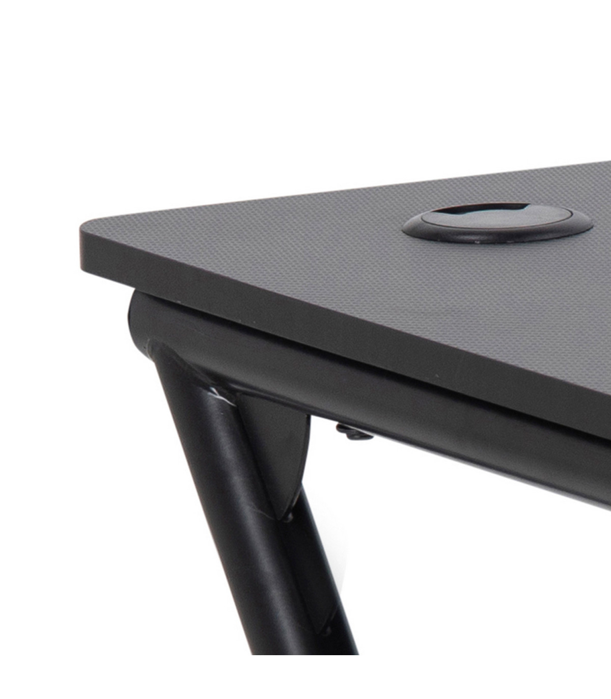 Kirjutuslaud TROOPER 100x60xH75cm, must. Kirjutuslaud on vajalik täiendus igas kodus, võimaldades mugavamalt arvutit kasutada või endale praktiline kodukontori ruum luua. Laud on valmistatud MDF-ist, musta värvi melamiinist. Laual on must tassihoidja. Jalad ja raam on valmistatud musta värvi metallist. Toote mõõdud on 100x60xH75cm.