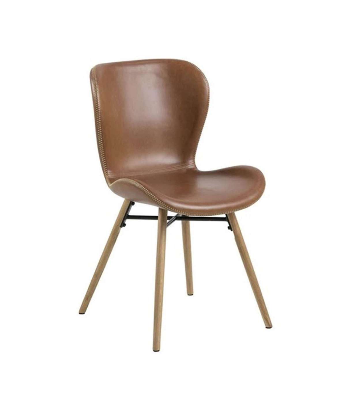 Tool BATILDA 47x56xH82,5cm. Mitmekülgne tool täiustab iga söögituba kaasaegse välimusega. Orgaanilise kujuga tool on kaetud pruuni kunstnahaga. Kumer seljatugi toetab ja lisab mugavust. Õlitatud tugevate tammejalgadega tool on stabiilne ja samal ajal stiilne. Iste/seljatugi: kunstnahk, värvus: brändi, kreemikad õmblused. Jalad: tamm, metall. Istumiskõrgus: 46,5cm. Kaalupiirang: 110kg. HOOLDUS: Puhastage seebiveest või PU (polüuretaan) pindade puhastusvahenditest kuivaks väänatud lapiga ja pühkige pind kuivaks. Kasutage ainult PH neutraalseid (7,0) puhastusvahendeid. Ärge asetage mööblit otsese päikesevalguse kätte.