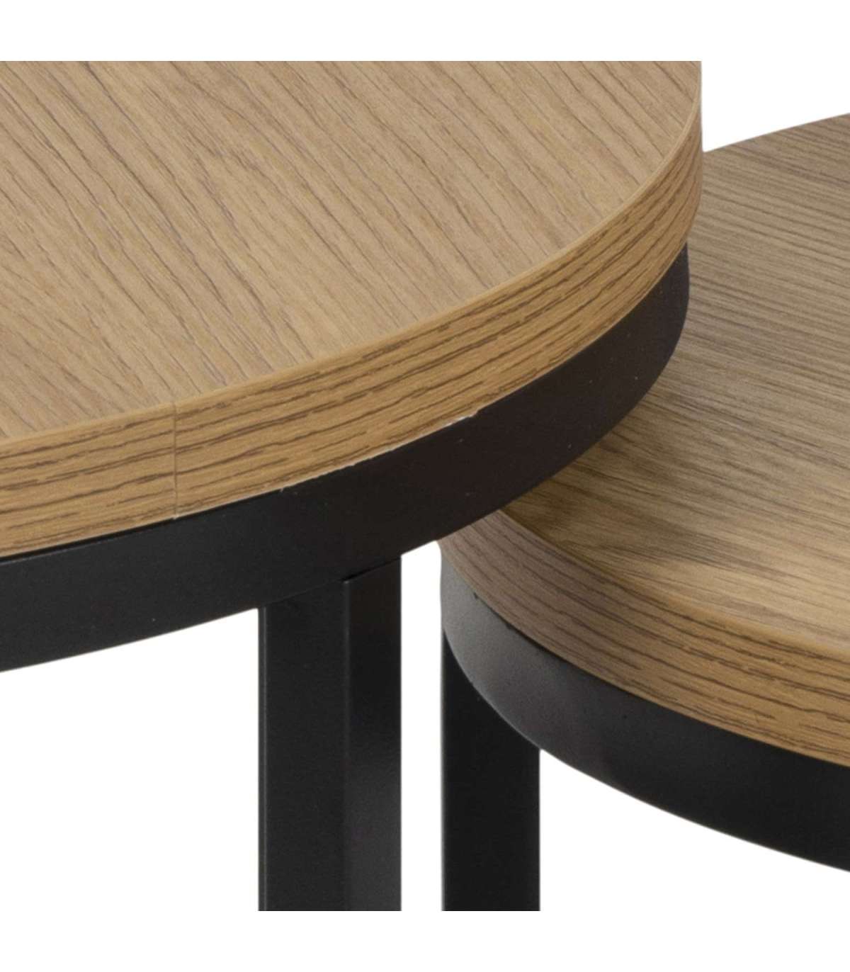 Ringikujulise siluetiga kahest lauast koosnev komplekt sobib hästi igasse kaasaegsesse koju. Laudu saab hoida koos või paigutada need eraldi. Tänu avatud põhjale saab väiksema laua paigutada suurema sisse ning hoida kokku põrandapinda. Lauaplaat: tamme melamiin. Alus: mattmust pulbervärvitud metall. Mõõdud 45x45xH40cm. HOOLDUS: Üldiselt vajavad kõik melamiinpinnad minimaalset hooldust. Kasutage seebiveest kuivaks väänatud lappi ja pühkige pind kindlasti kuivaks. Vältige küürimispulbri või nailonkäsnade kasutamist, kuna need pleegitavad või kriimustavad laminaati. Ärge hõõruge pinda kõvade esemetega.