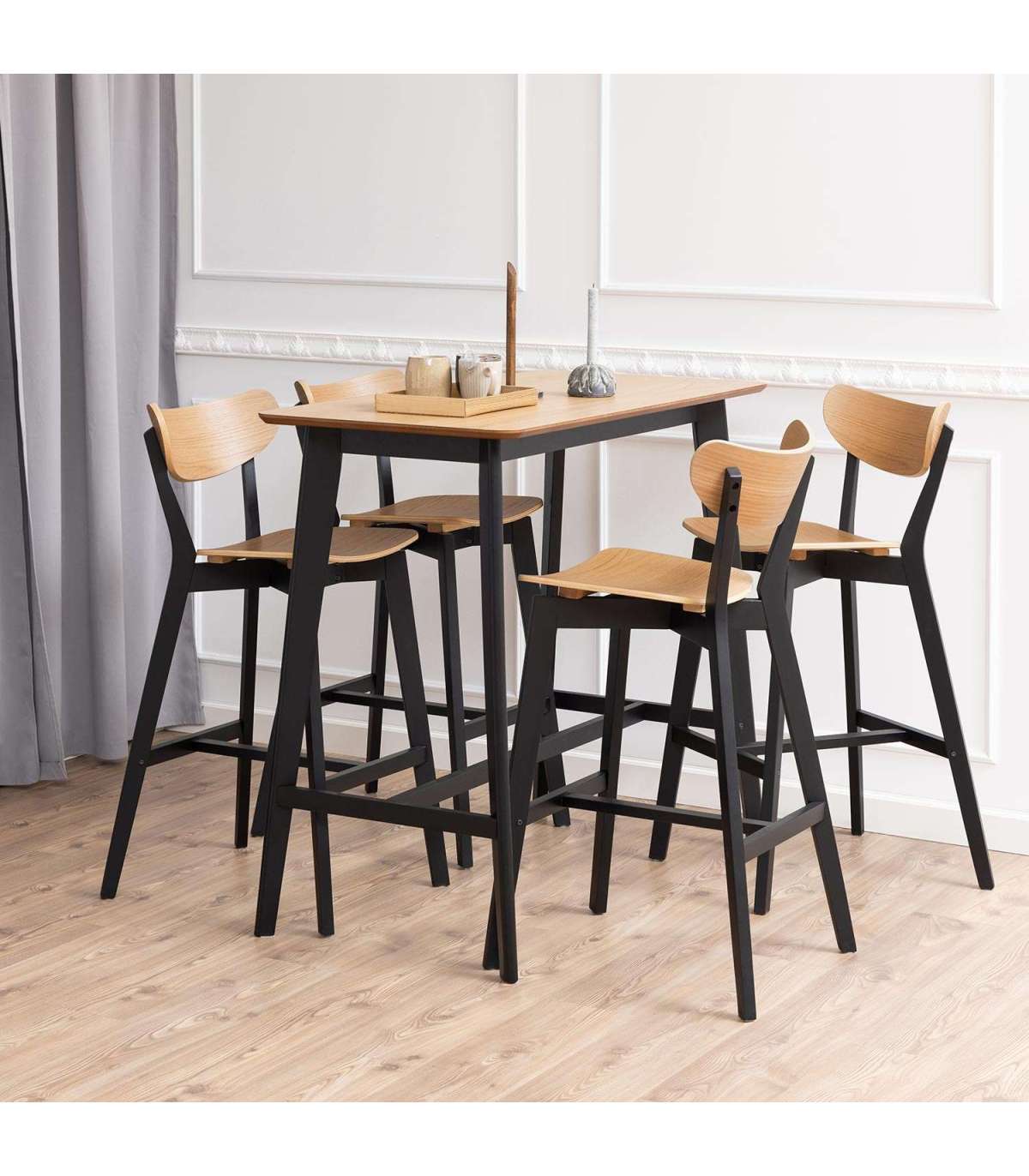 Ekspressiivne baaritool toob igasse koju värsket energiat. See on retroilmega, kuid kaasaegse esteetikaga. Lakitud tammevineer ja must lakitud puidust alus loovad julge kontrasti. Istudes saab nõjatuda kumera seljatoe poole ja asetada jalad jalatoele, mis võimaldab kehal lõõgastuda. Lihtsalt hooldatavad pinnad vajavad minimaalset hoolt. Mõõdud on 45x49xH105cm.