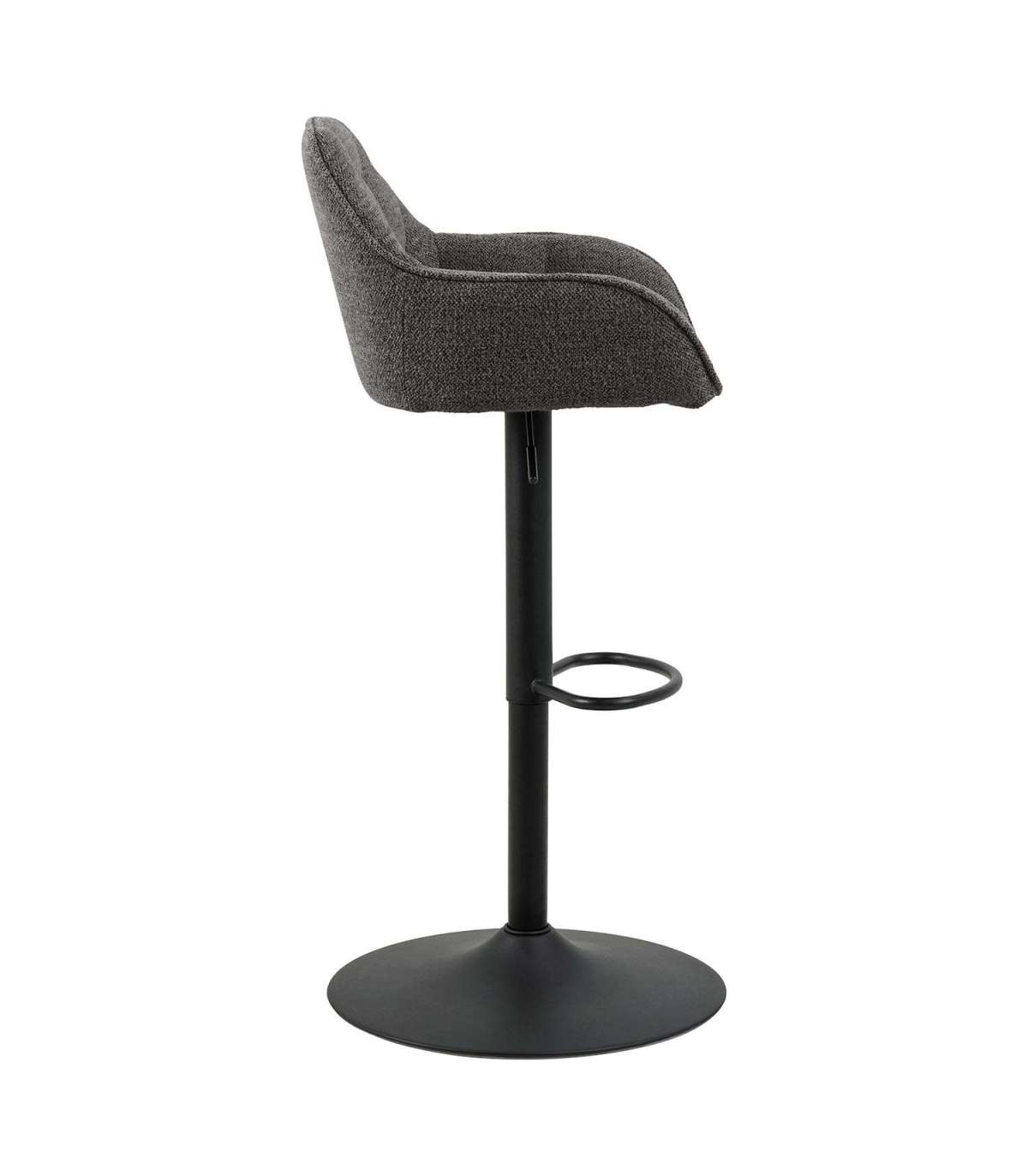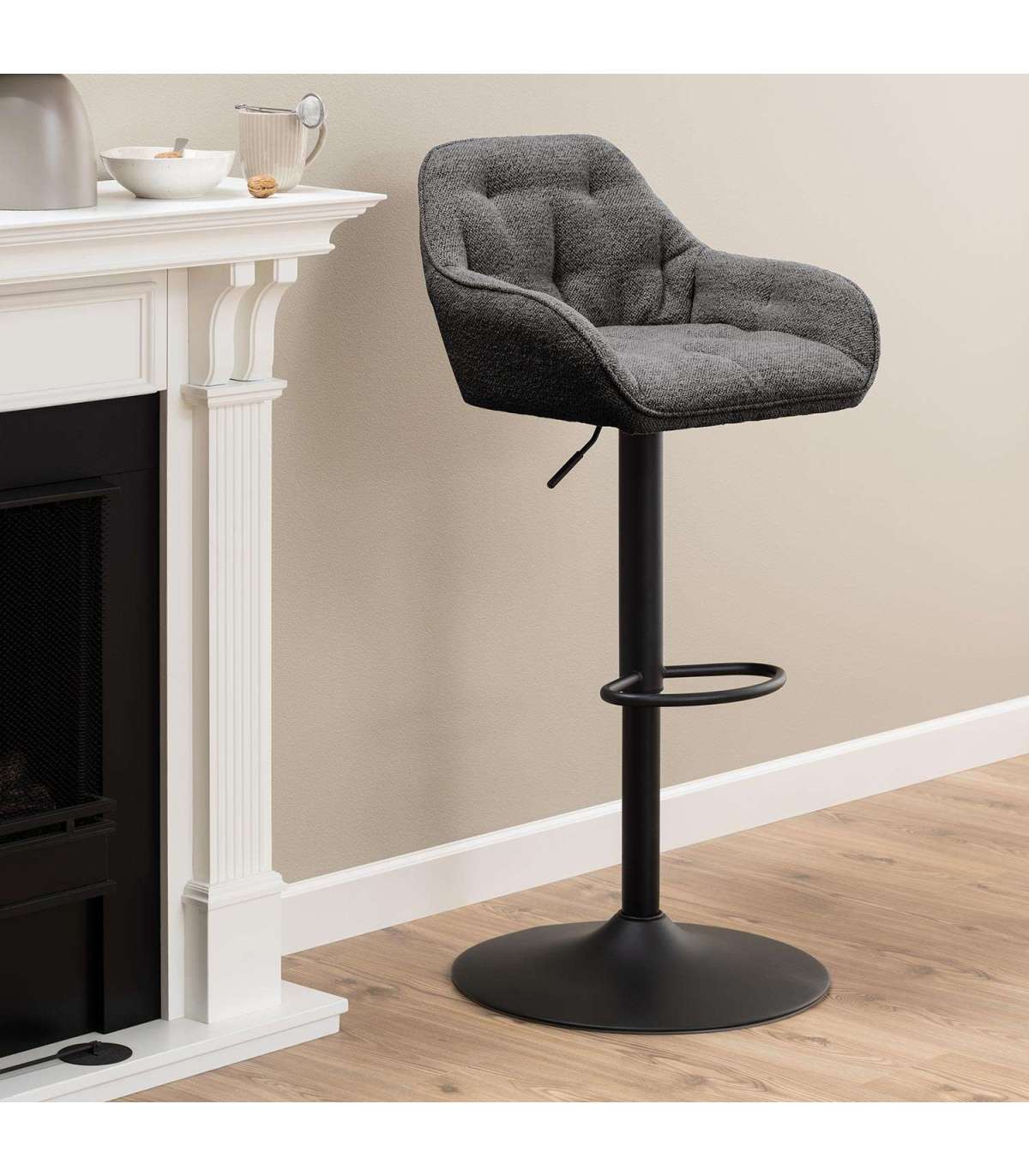 Baaritool on ideaalne lisandus igasse kööki, kas hommikuse kohvi või pärastlõunaste jookide nautimiseks. Baaritool on polsterdatud pehme antratsiithalli bukleekangaga, millel on luksuslik tekstuur. Baaritoolil on must terasest jalg. Sellel on jalatugi, pöörlev funktsioon ja gaasitõstuk. Istme kõrgust saab reguleerida 63–84cm. Mõõdud on 52x52xH109cm.