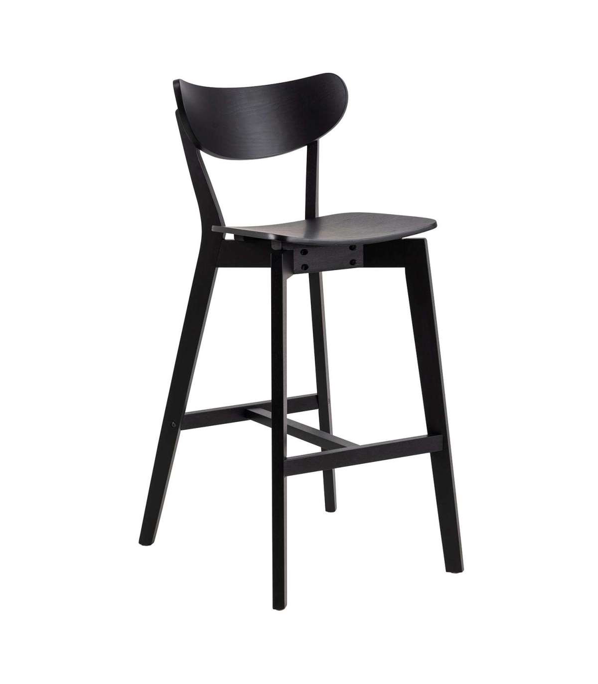 Ekspressiivne baaritool on retrohõngulise, kuid siiski kaasaegse esteetikaga, mis muudab disaini põnevaks. Mustaks lakitud tammespoonist iste ja puidust alus annavad baaritoolile elegantse välimuse. Istumine on mugav tänu kumerale seljatoele ja jalatoele, kus jalgu puhata. Mustaks lakitud puidust alus. Mõõdud 45x49xH105cm.