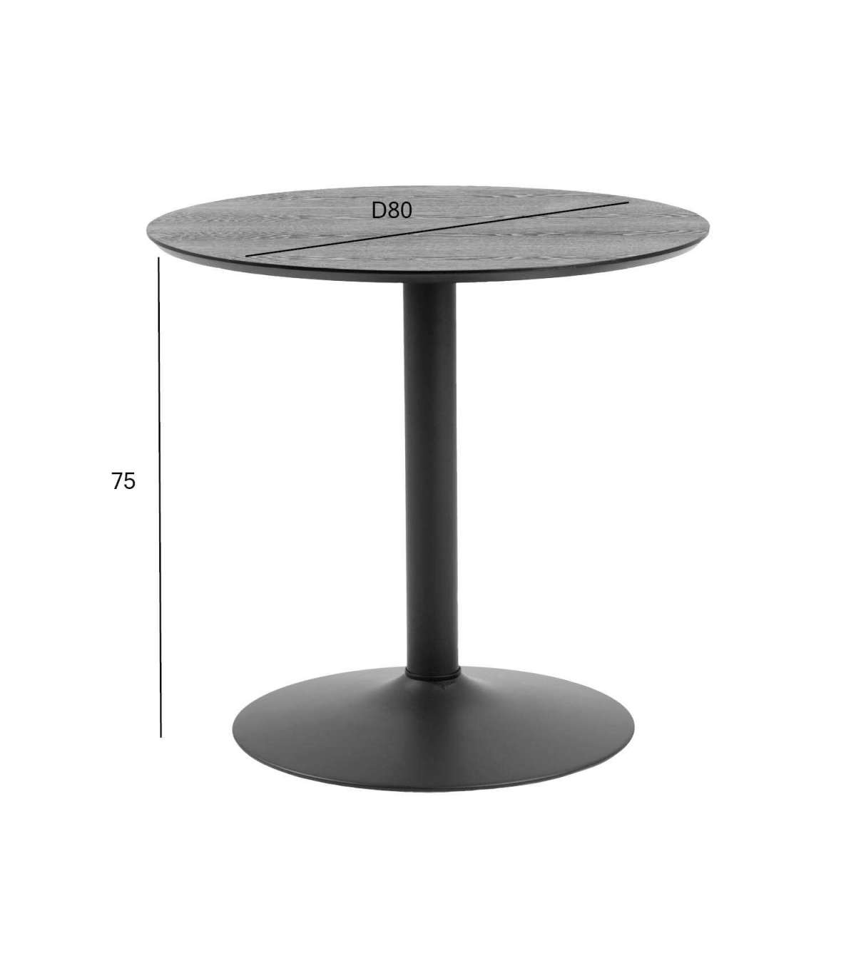 Moodne ja minimalistlik. Hoolikalt valitud materjalid on lihtsasti hooldatavad. Lauajala kuju tagab laua stabiilsuse. Lauaplaat: lakitud spoon. Alus: mattmust pulbervärvitud metall. Mõõdud D80xH75cm. HOOLDUS: Üldiselt vajavad lakitud pinnad vähe hooldust. Kõik plekid tuleb koheselt eemaldada seebiveest kuivaks väänatud lapiga ja pühkida pind kuivaks. Klaasialused ja lauamatid aitavad vältida pinnakahjustusi. Ärge hõõruge pinda kõvade esemetega.