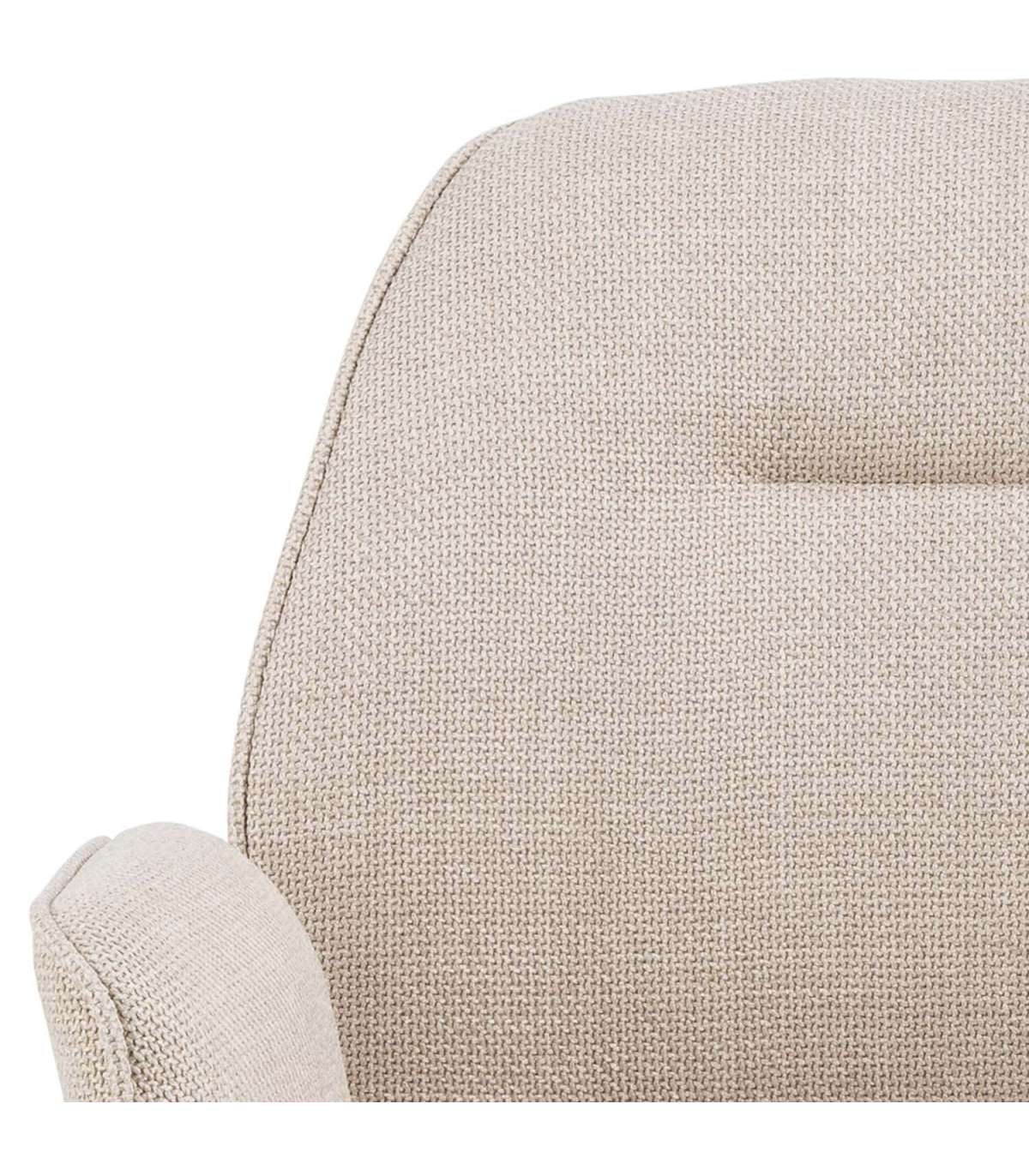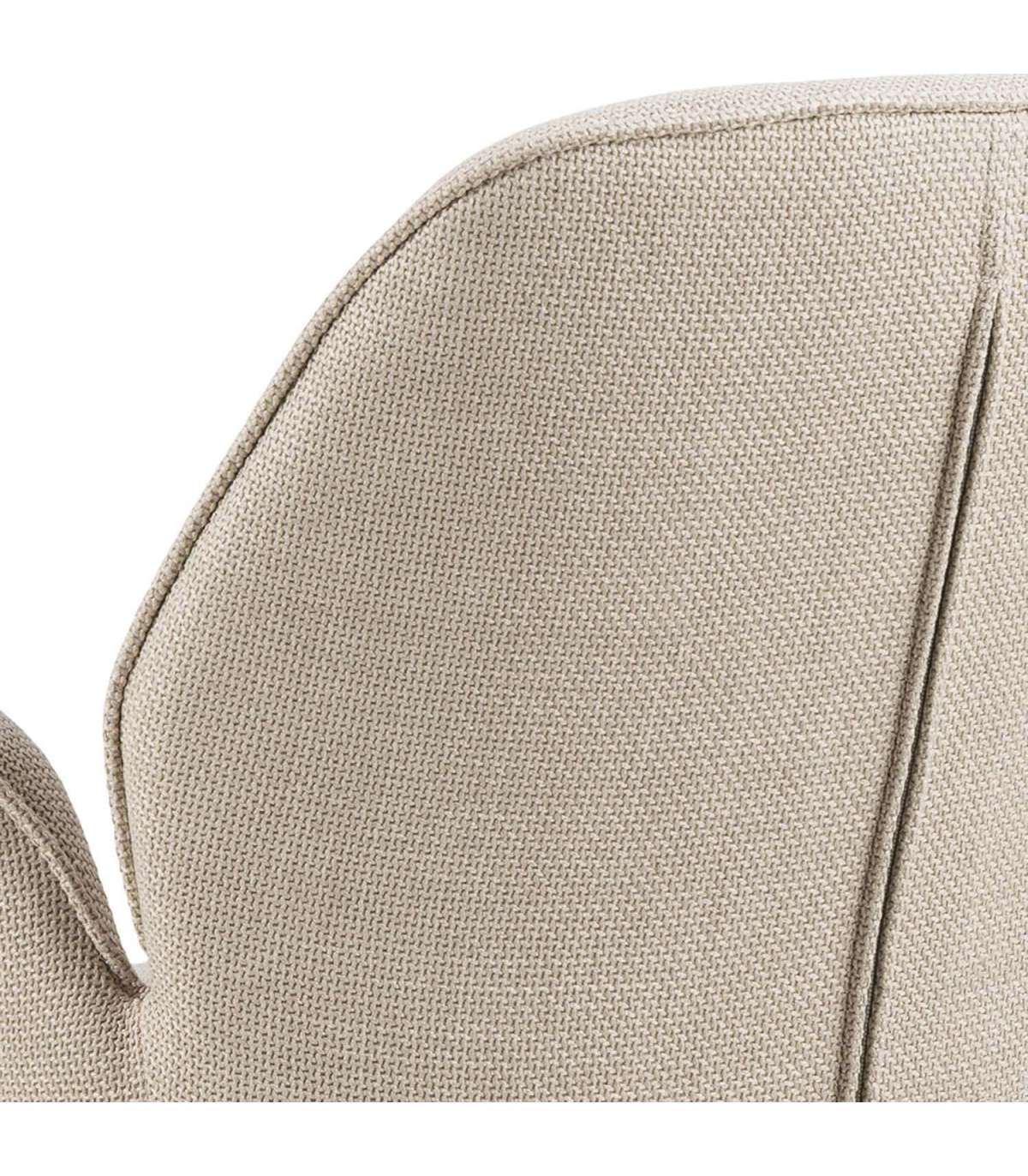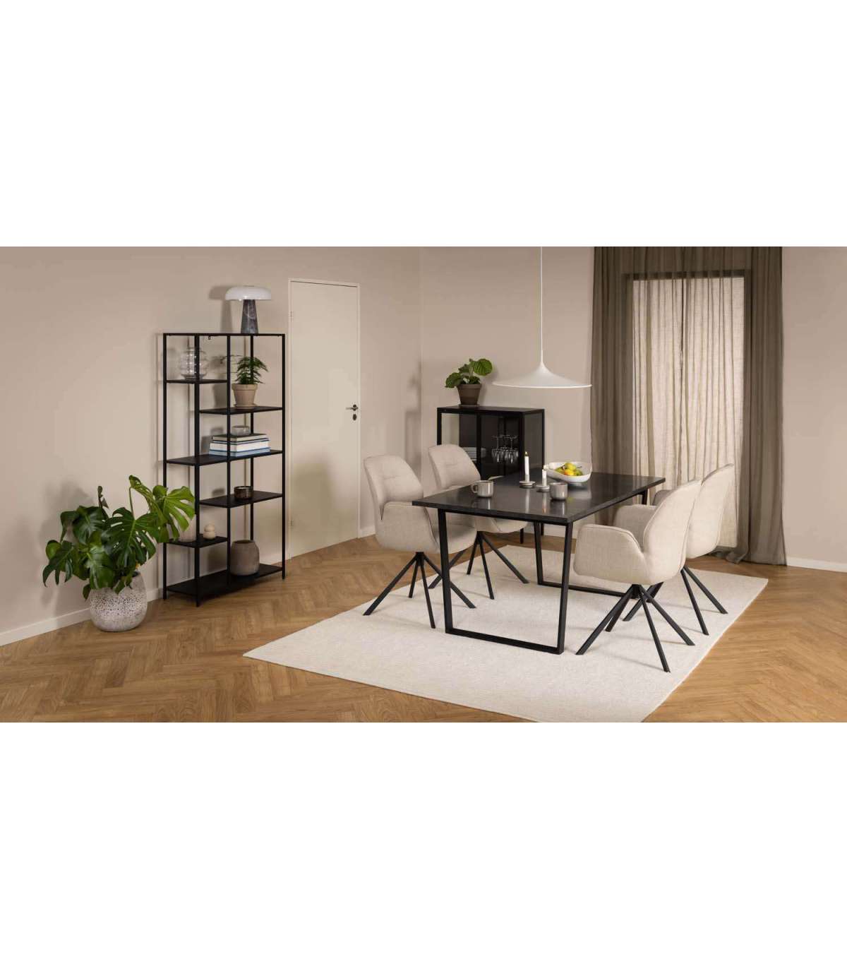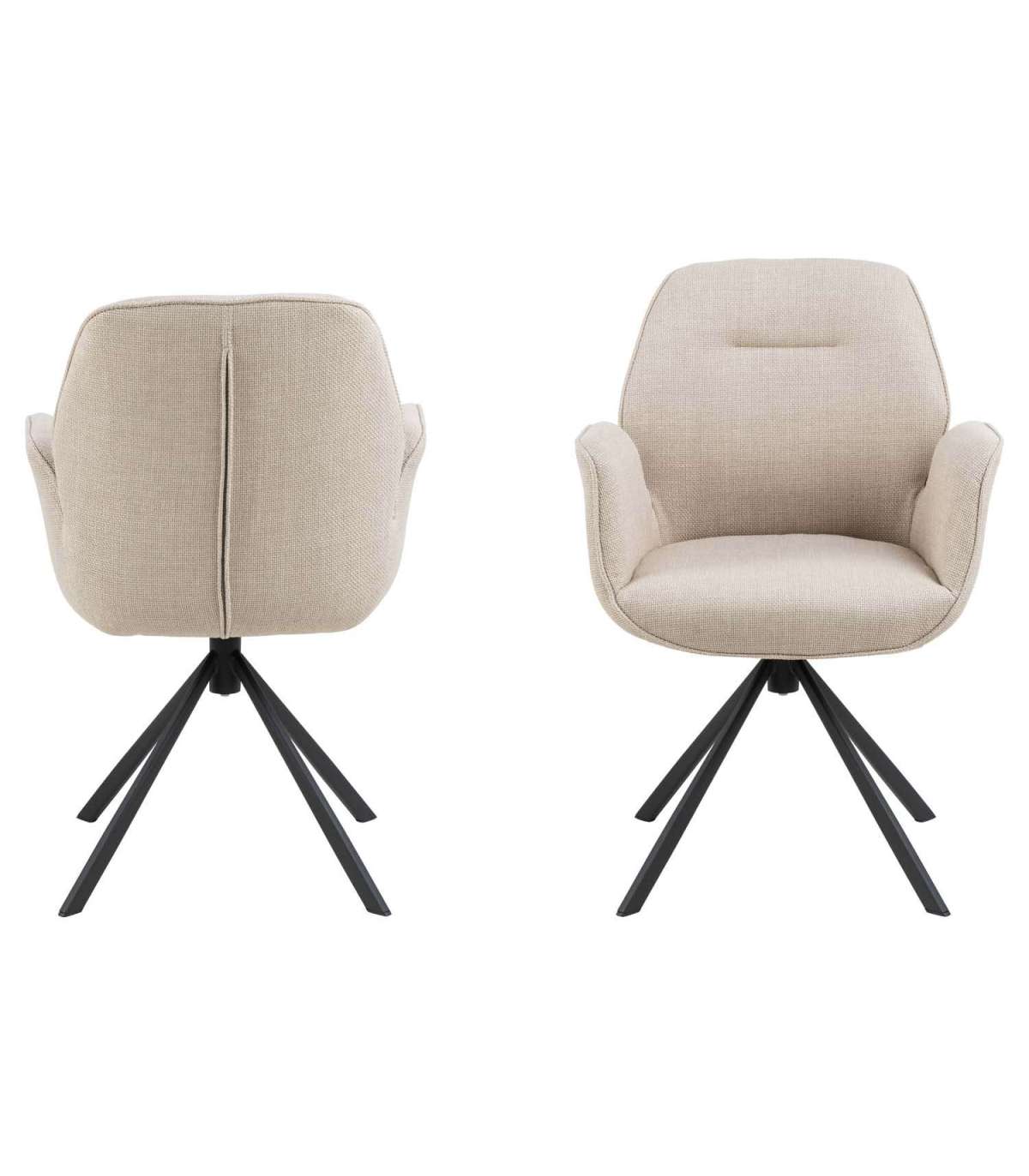 Iseloomuliku siluetiga ja moodsalt elegantne söögitool sobib suurepäraselt igasse kaasaegsesse koju. Iste on polsterdatud kahetoonilise efektiga beeži kangaga, mis annab tekstuurse välimuse. Käetugede ja seljatoe vahel on lõige. Tooli moodsat ilmet rõhutab must metallist alus, millel on pöörlev funktsioon. Mõõdud 60,5x58,5xH91cm.