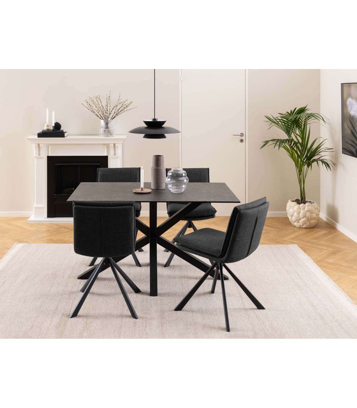 Tool lisab igale söögitoale isikupära. Tool on polsterdatud tumehalli kahevärvilise efektiga kangaga. Istme peal asub kinnitatud padi, millel on iseloomulik tekstuurne välimus. Tooli moodsat välimust rõhutab veelgi must metalljalg, millel on pöörlev funktsioon. Mõõdud on 47x59xH85cm.