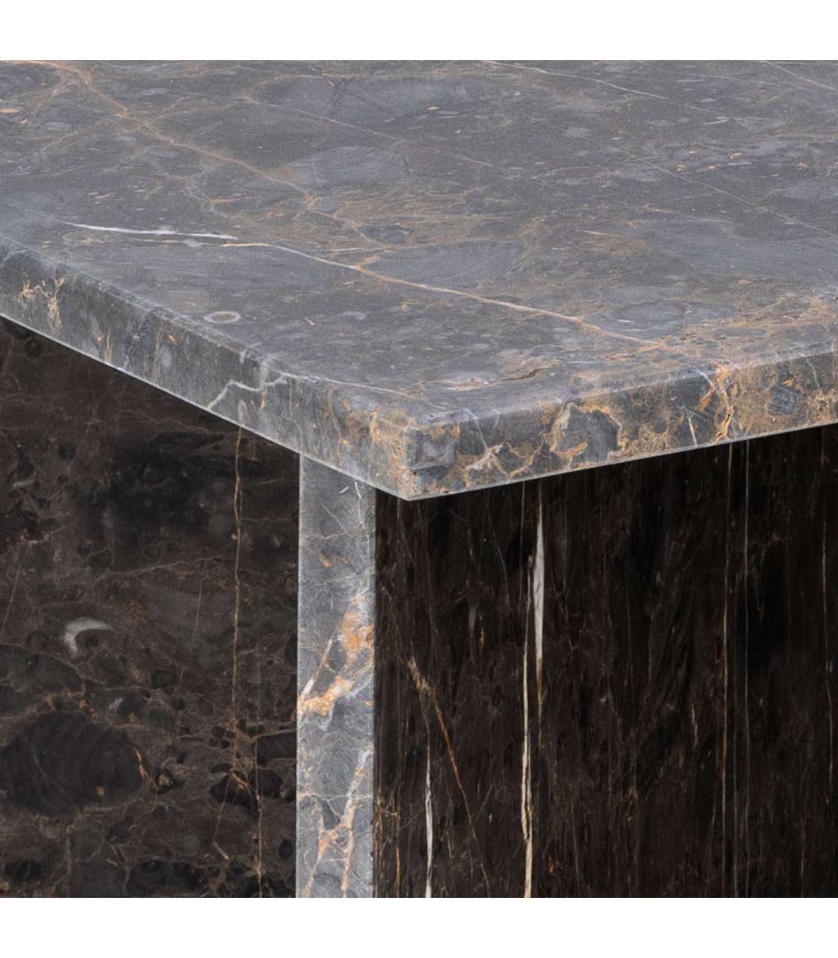 Skulptuurne kohvilaud muudab elutoa rafineeritumaks. Ruudukujuline lauaplaat ja V-kujuline alus annavad lauale kaasaegse välimuse. Valmistatud pruunist Türgi marmorist. Kivile iseloomulikud erisused värvis, struktuuris ja pinnas muudavad iga toote ainulaadseks. Matt lakitud viimistlus tõstab esile materjali ilu. Toote mõõdud on 90x90xH42cm.