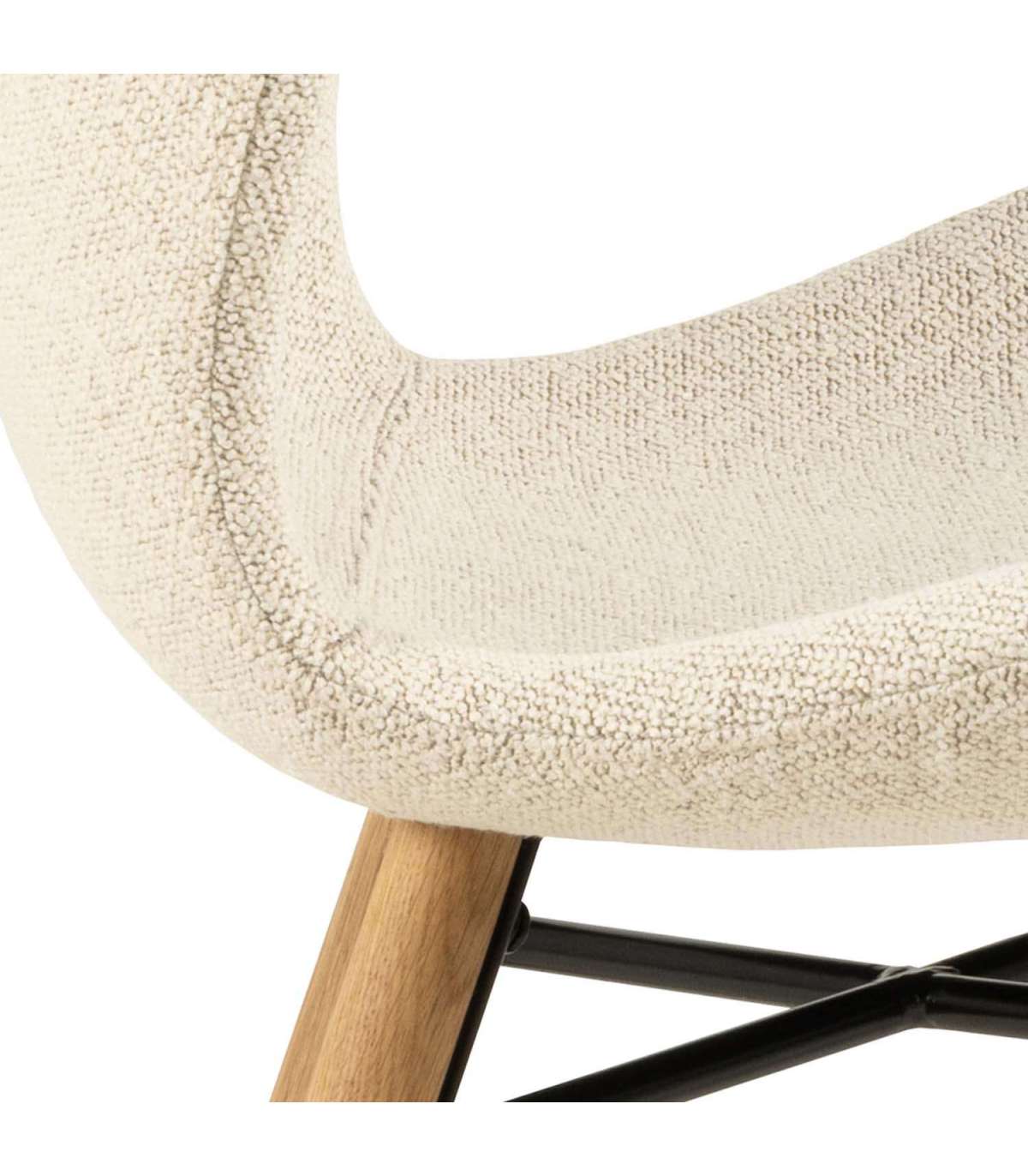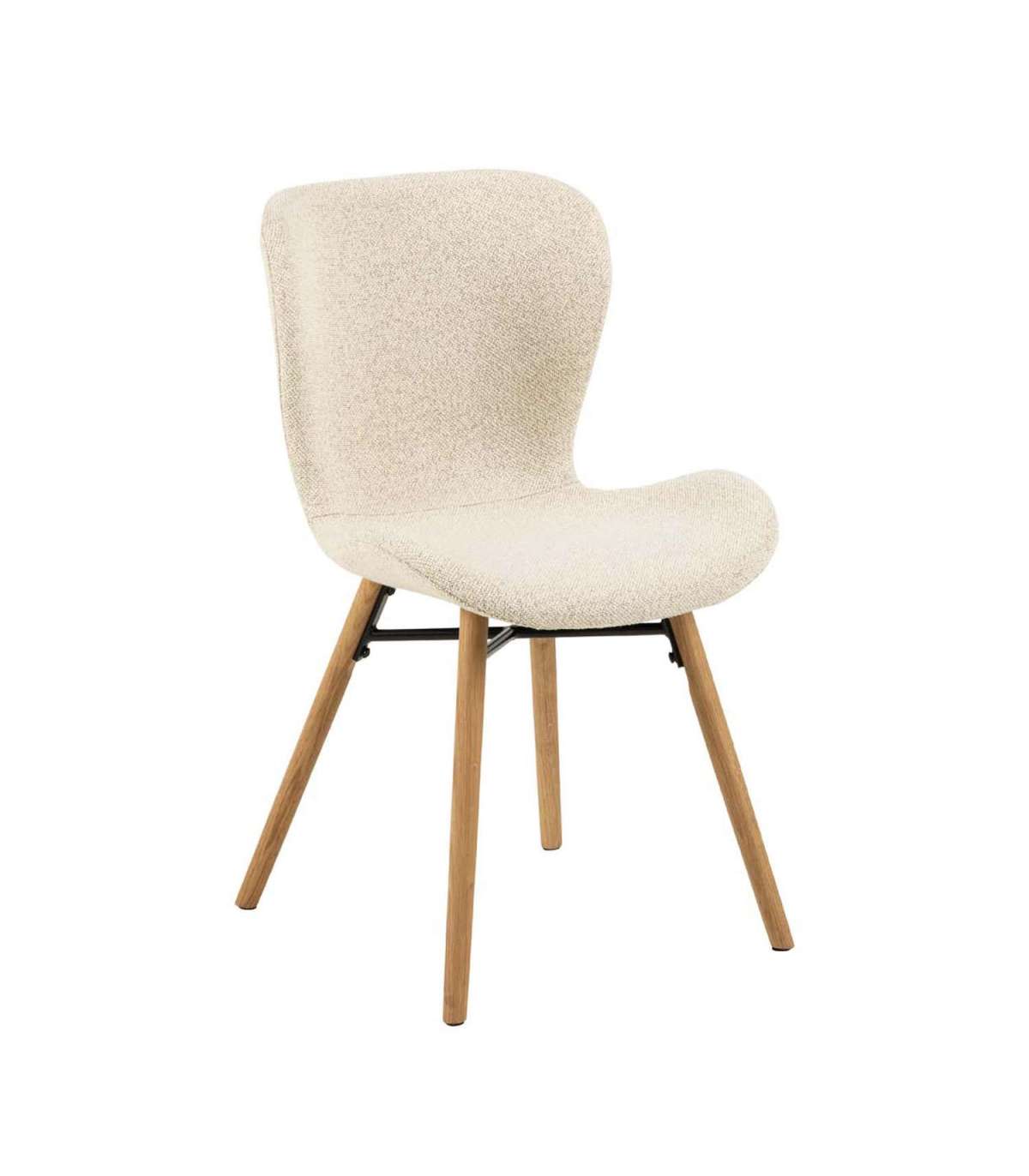 Pehme ja mugava istmega söögitool. Orgaanilise kujuga ja seljatoega tool. Polsterdatud pehme bukleekangaga. Õlitatud viimistlusega tammepuidust jalad loovad loomuliku välimuse. Must metallist ristdetail kontrasti loomiseks. Toote mõõdud on 47x53xH82,5cm.