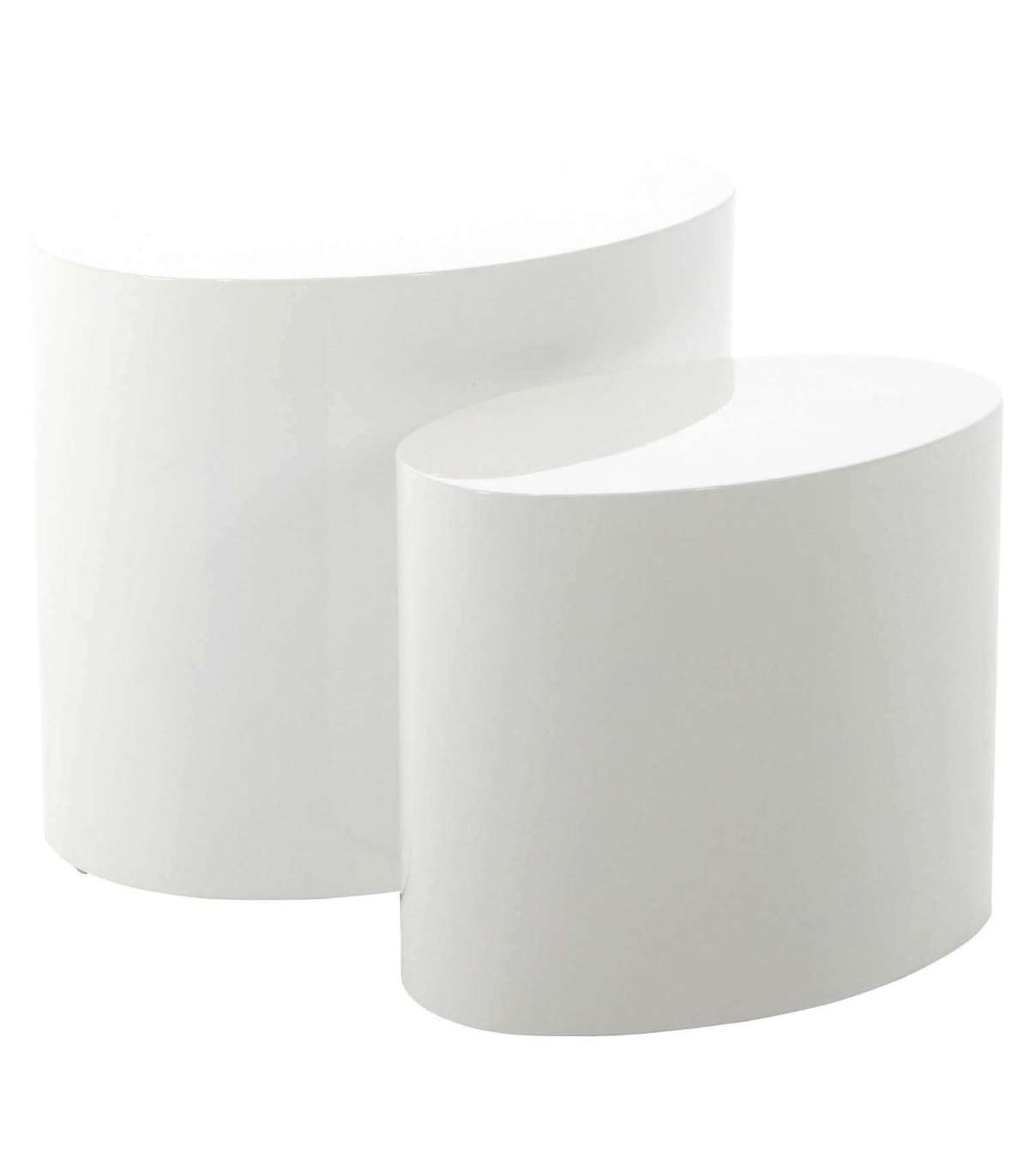 Kaheosaline diivanilauakomplekt paistab silma värske disainiga. Viimistletud pinna ja ovaalse kujuga lauakomplekt annab igale elutoale rafineeritud ilme. Komplekt sobib suurepäraselt erinevate stiilide diivanite juurde. Lauaplaat ja alus: kõrgläikega valgeks värvitud MDF. Komplektis 2 tk. Mõõdud 33x48xH40cm.