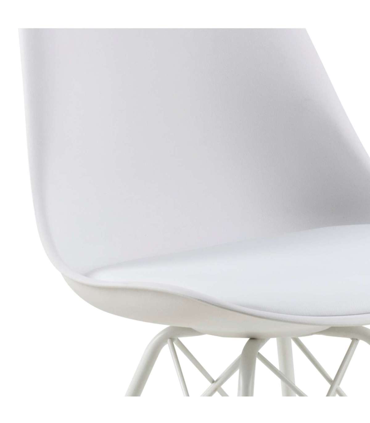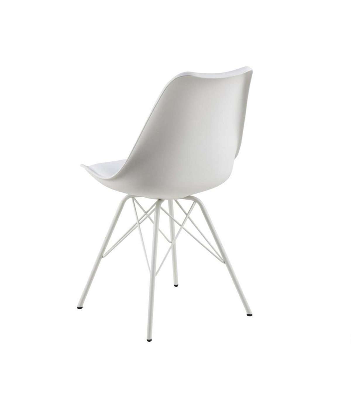 Ajatu söögitool. Orgaanilise kujuga iste sobib mugavalt selja loomuliku kumerusega, aidates säilitada hea kehahoiaku. Pehme istumisosa pakub pikkadeks õhtusöökideks mugavat istet. Toolil on pulbervärvitud metalljalad, mis täiendavad kaasaegset välimust. Istme kõrgus 49cm. Seljatugi: valge plastik, iste: valge kunstnahk. Jalad: valgeks värvitud metall. Kaalupiirang: 110kg. Toote mõõdud on 48,5x54xH85,5cm.