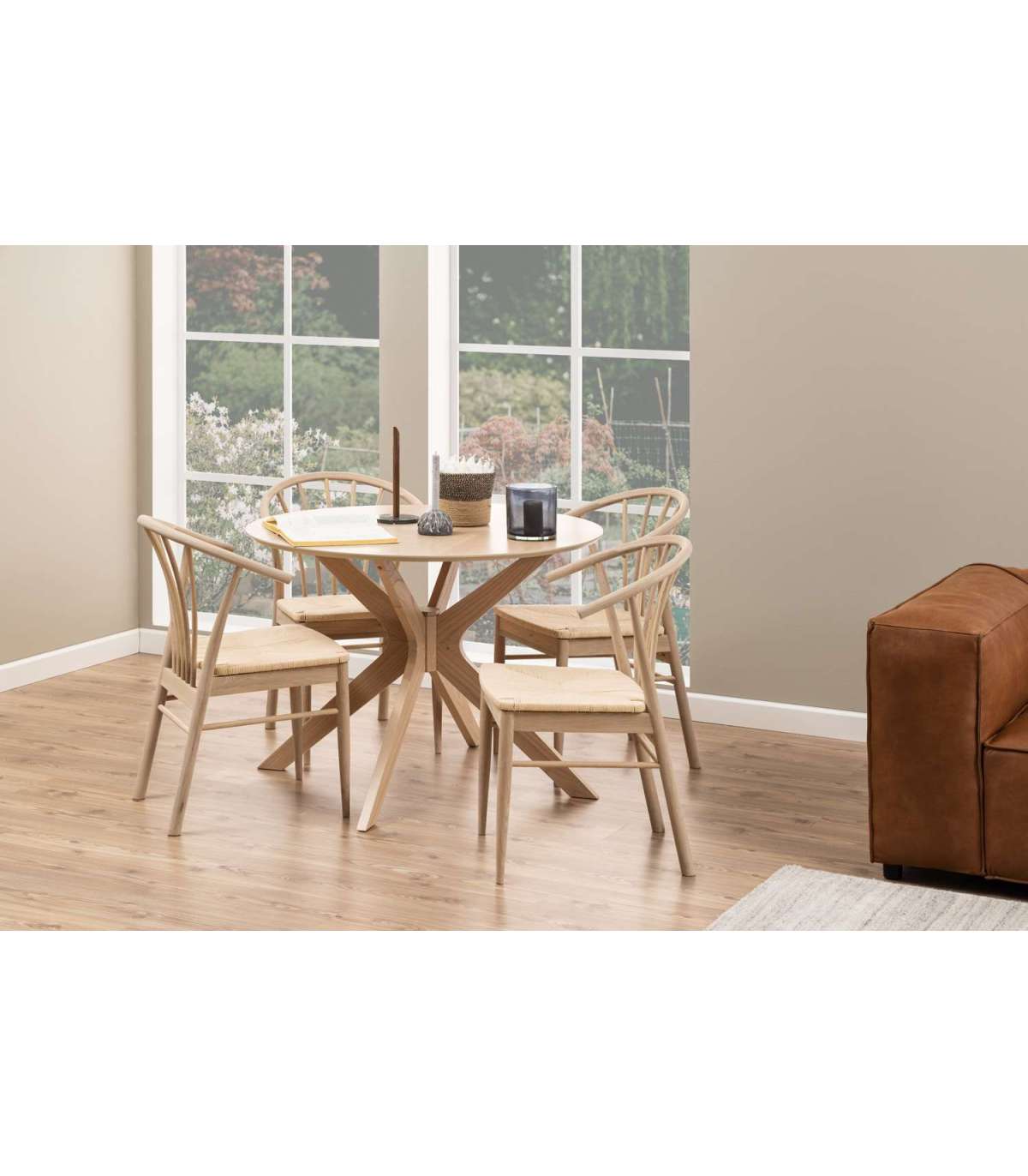 Inspireeritud skandinaavia stiilist. Vertikaalsete liistudega seljatugi toetab selga ja lisab toolile huvitava elemendi. Tugev punutud iste. Raam valge pigmenteeritud õlitatud tamm. Mõõdud 54x54xH83cm. HOOLDUS: kõik plekid tuleb koheselt eemaldada niiske lapiga. Pühkige pind kindlasti kuivaks.
