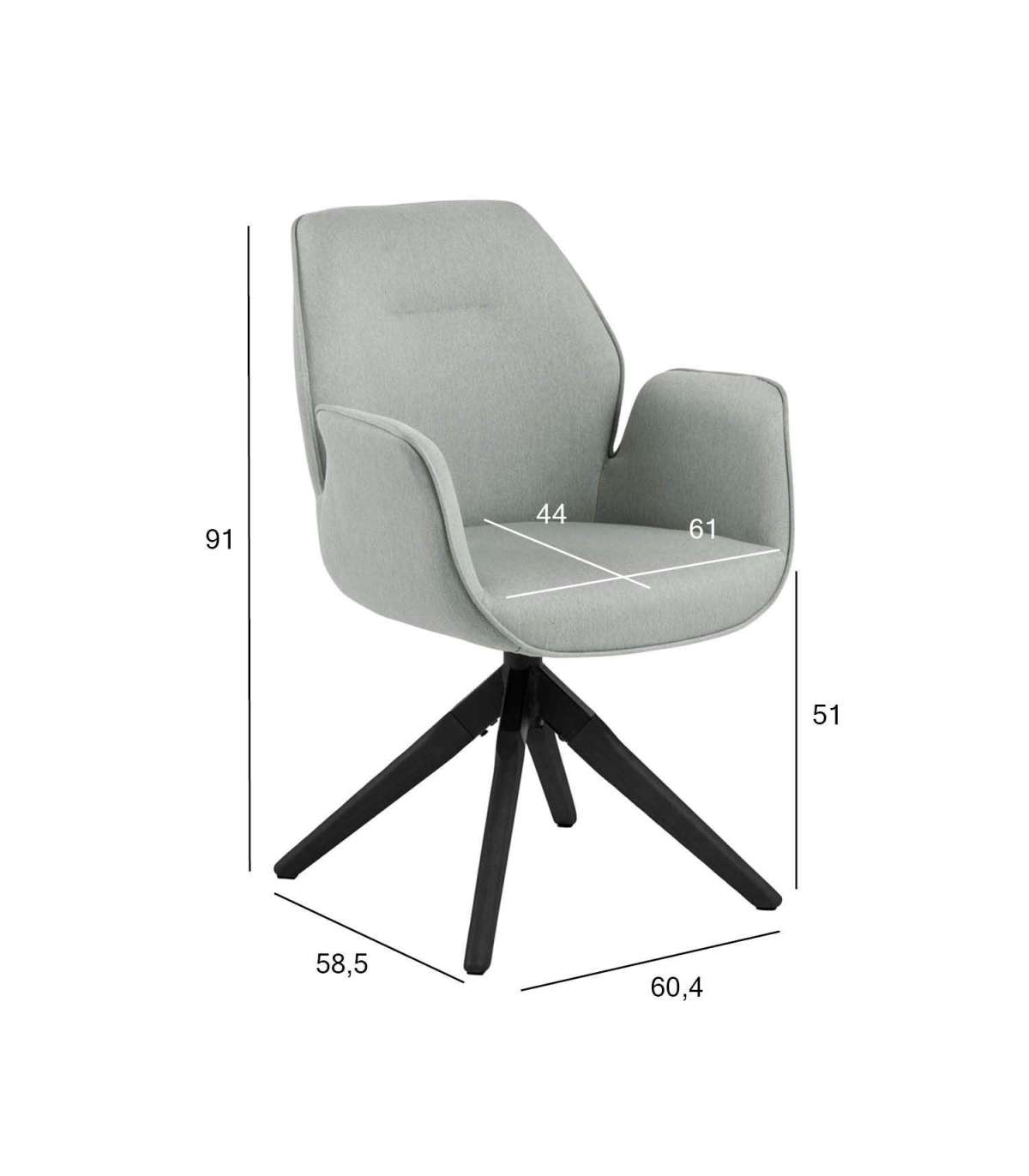Elegantsel käetugedega söögitoolil on maitsekas siluett. Tool on stiilne lisandus igasse söögituppa. Polsterdatud iste võimaldab tundide kaupa mugavalt istuda. Lakitud puitjalad. Toote mõõdud on 60,5x58,5xH91cm. HOOLDUS: Hooldus piirdub tolmuimejaga ja plekieemaldamisega. Plekkide eemaldamisel tuleb olla ettevaatlik. Katsetage plekieemaldajaid esmalt vähem nähtaval alal ja tegutsege vastavalt tulemusele. Ärge kunagi kasutage lahusteid. Ärge asetage mööblit otsese päikesevalguse kätte. Aluse jaoks kasutage pehmes seebivees tugevalt väänatud lappi ja pühkige pind kindlasti kuivaks.