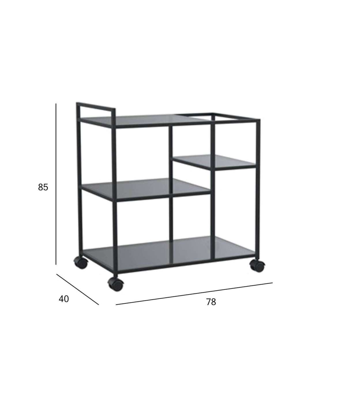 Serveerimislaud on valmistatud terasest, mis lisab ruumi tööstuslikku ja modernset ilmet. Tänu kitsale disainile mahub serveerimislaud mugavalt kõikjale. Kasutage abilauda laheda disainielemendina ruumi täiustamiseks ja samal ajal mitmekülgse panipaigana. Serveerimislaual on 3 riiulit. Materjal: pulbervärvitud metall, mattmust. Mõõdud on 78x40xH85cm.