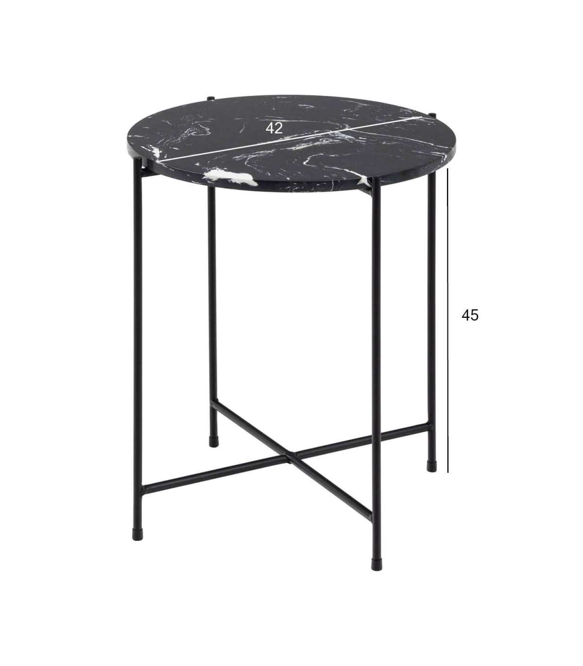 Abilauad mängivad kodudes suurt rolli. Marmori välimusega kivist valmistatud laud on stiilne diivani kaaslane. Õhuline pulbervärvitud metallist alus, millel on ristuvad detailid. HOOLDUS: pühkige pind seebivees väänatud lapiga ja eemaldage liigne niiskus koheselt. Aja jooksul muutub vesipoleeritud mööbel matiks ja vajab täiendavat hooldust. Kasutage kivitoodete jaoks sobivaid puhastusvahendeid. Aluse jaoks kasutage igapäevaseks puhastamiseks seebivees tugevasti väänatud lappi. Rooste vältimiseks pühkige lapiga kuivaks. Ärge hõõruge pinda kõvade esemetega.