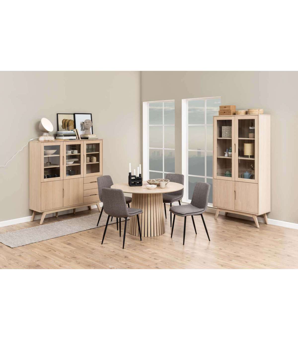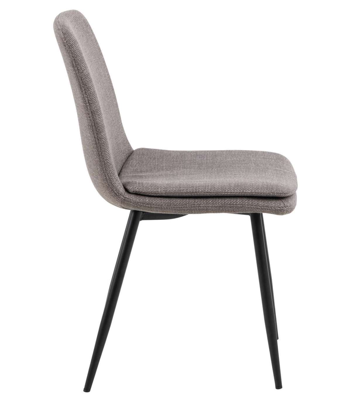 Voolujooneline siluett mõjub võluvalt. Tooli istmel on õmmeldud lisakiht. Struktuuriga hallikaspruuni polstri kahevärviline efekt lisab visuaalset sügavust. Toolil on peened mustad metalljalad. Moodsa tooli puhul on esindatud nii elegants kui ka mitmekülgsus. Mõõdud on 46x55xH85,5cm.