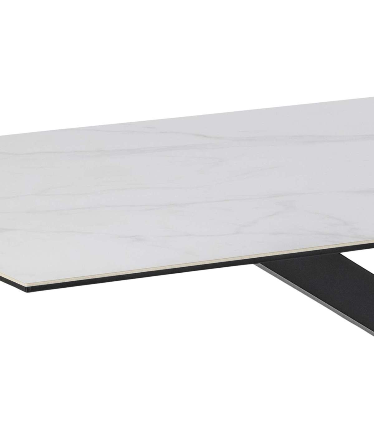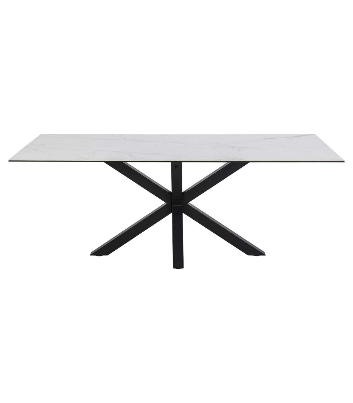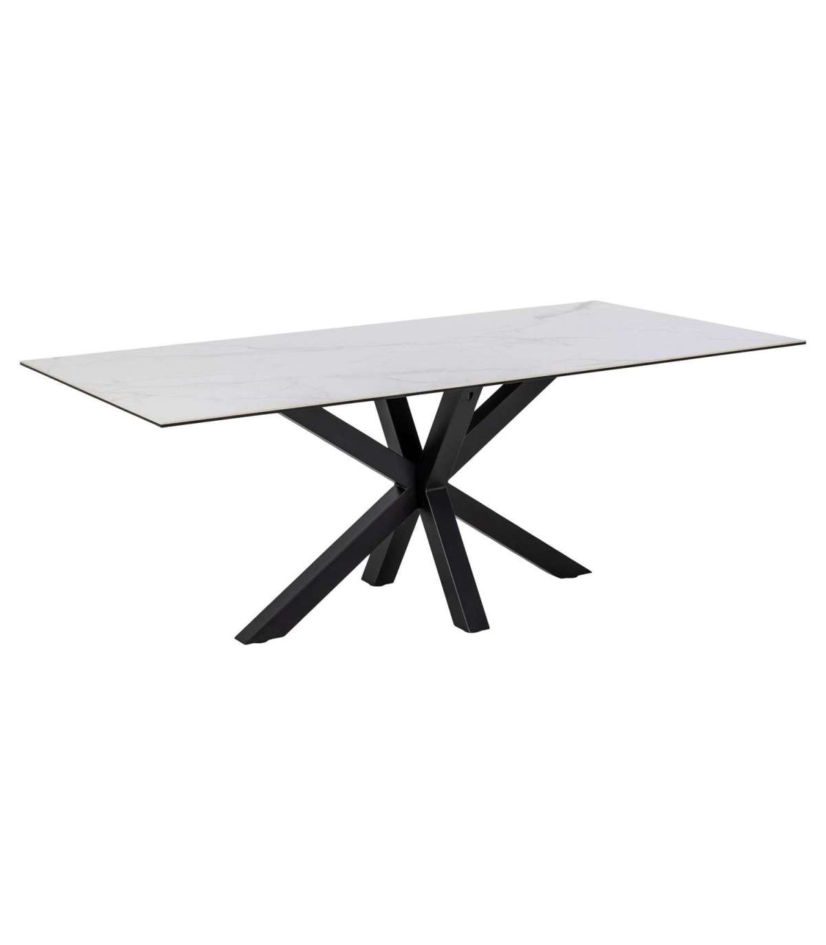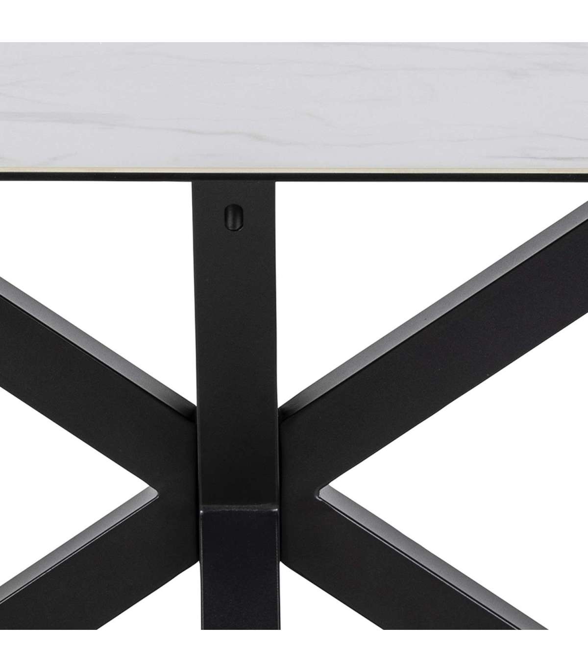Maitsekas söögilaud pakub piisavalt pinda meeldivaks einestamiseks. Marmorist välimusega laual on kaasaegne ilme ja seda on lihtne hooldada. Kuumus- ja kriimustuskindel keraamiline lauaplaat ja skulptuurne ristalus. Sellised omadused muudavad laua ideaalseks lisanduseks igasse koju. HOOLDUS: Plekkide tekkel pühkige pind puhtaks tugevasti väänatud kiudlapiga või paberrätikuga. Pinnakahjustuste vältimiseks kasutage klaasialuseid ja lauamatte. Rooste vältimiseks pühkige pind lapiga kuivaks. Ärge hõõruge pinda kõvade esemetega
