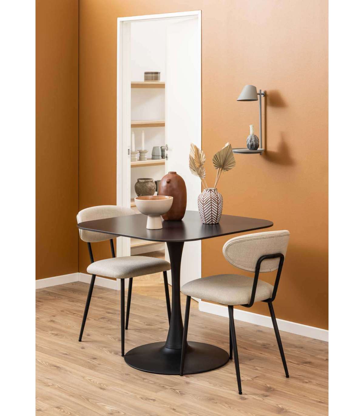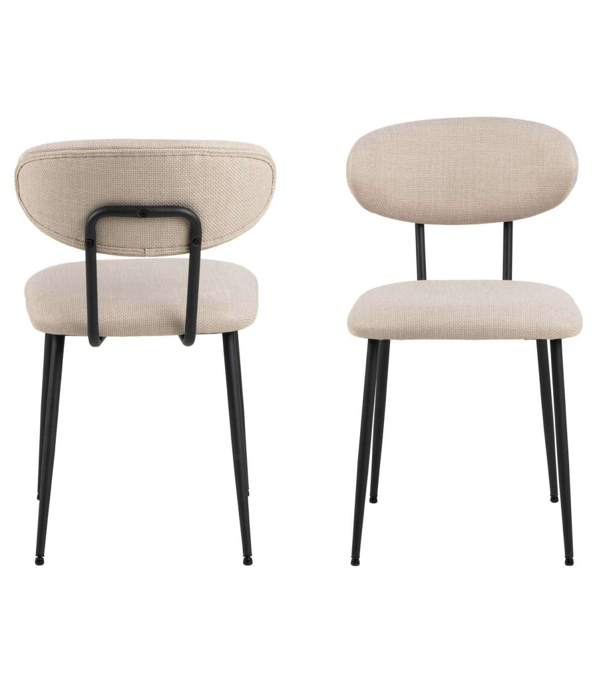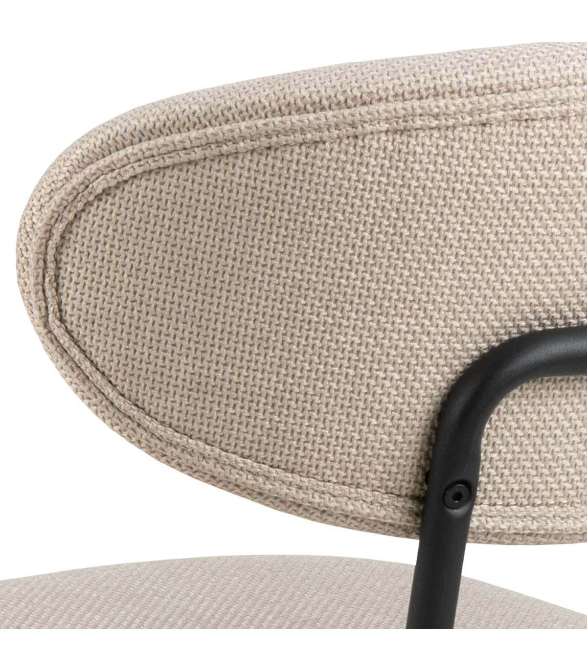 Moodsa ja mitmekülgse välimusega söögitool. Visuaalselt tasakaalus disain sobib igasse koju. Polsterdatud kahetoonilise efektiga beeži kangaga. Kontrastse elemendi loovad peened pulbervärvitud mustad metalljalad. FSC™ sertifikaat. Toote mõõdud on 43,5x53xH78,5cm.