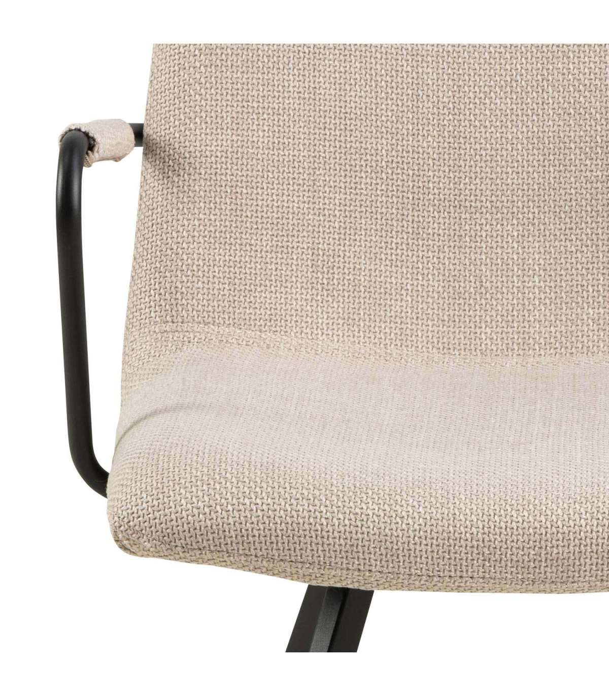 Elegantse istme, käetugede ja mustade metalljalgadega söögitool leiab hõlpsasti oma koha igas moodsas söögitoas. Tooli kerge välimus on ajatu. Sügavuse lisamiseks on iste kaetud tekstuurse ja pehme beeži kangaga, mis on kahevärvilise iseloomuga. Pulbervärvitud metalljalad tagavad stabiilsuse. Selline söögitool muudab iga eine hubaseks kogemuseks. Mõõdud on 55,5x50,5xH85cm.